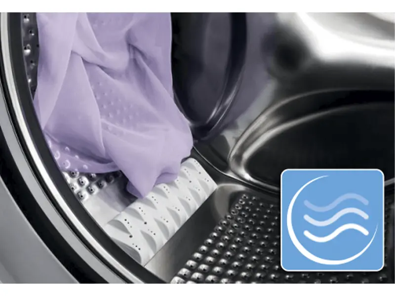 Пральна машина виконує оберти, рівномірно розподіляючи речі всередині барабана, завдяки чому цей пральний засіб проникає глибше у волокнисті тканини та ефективніше усуває забруднення.