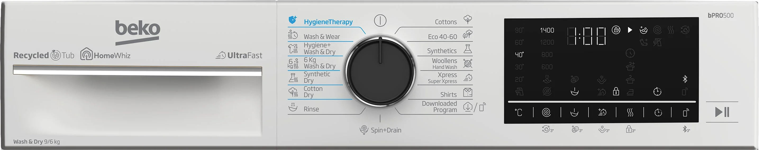 Прально-сушильна машина Beko фронтальна, 9(6)кг, 1400, D, 60см, дисплей, білий