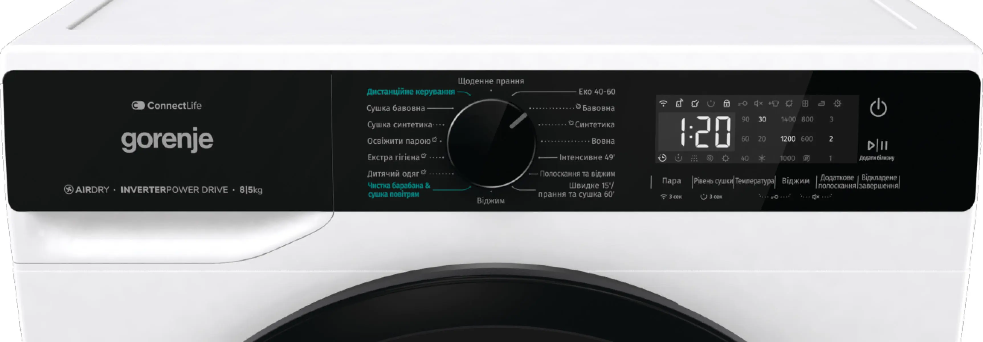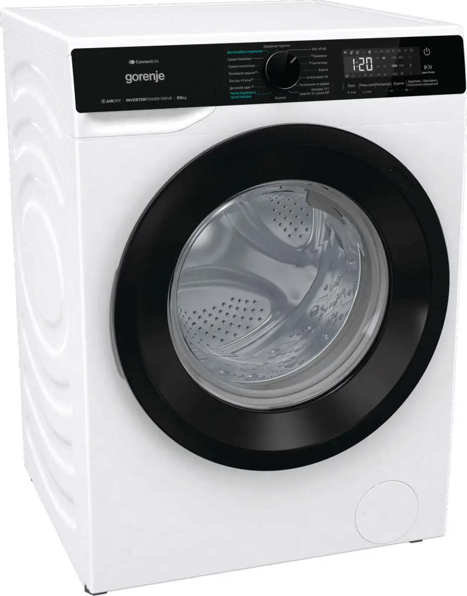 Прально-сушильна машина Gorenje фронтальна, 8(5)кг, 1400, A+, 51см, дисплей, інвертор, Wi-Fi, білий