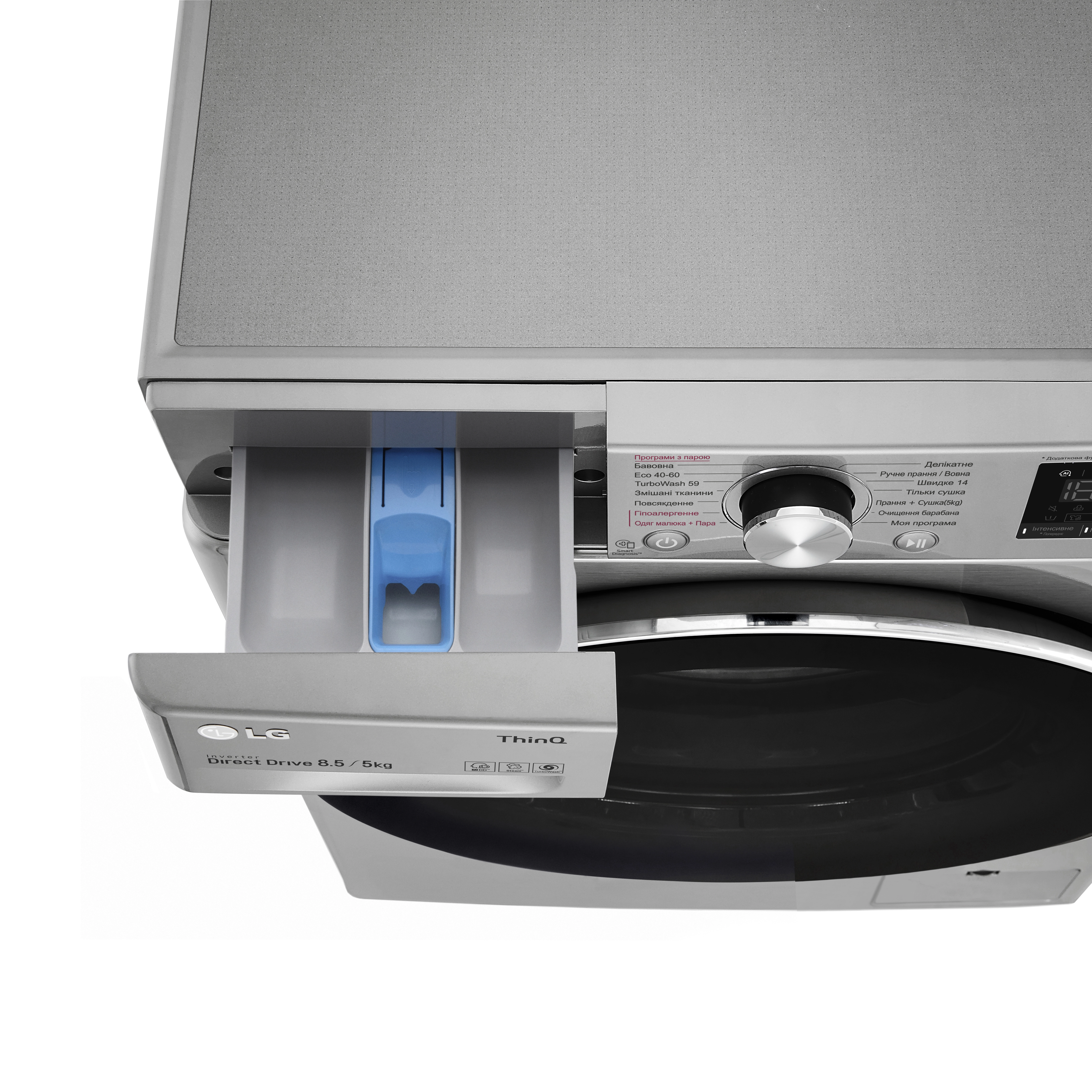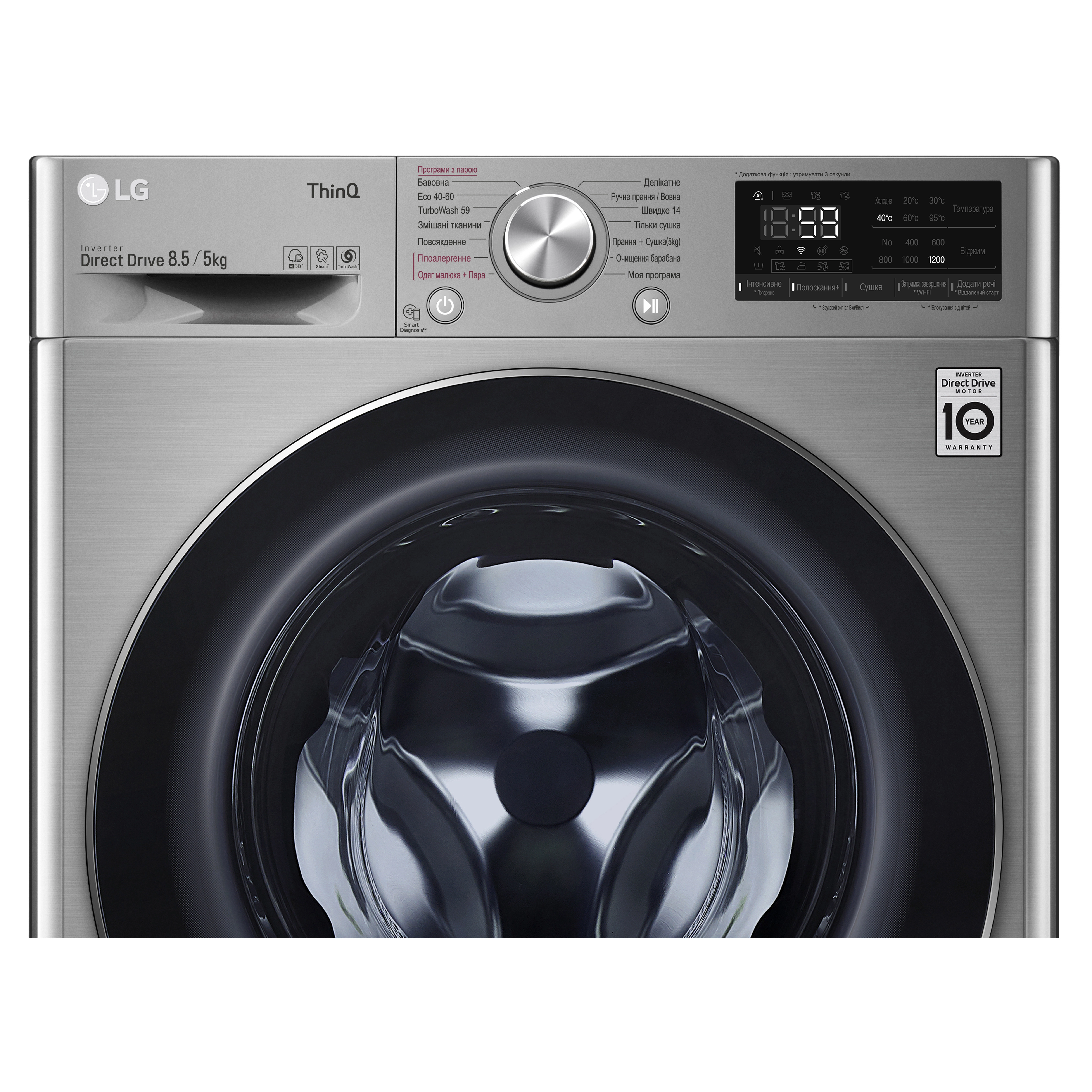 Прально-сушильна машина LG фронтальна, 8.5(5)кг, 1200, A, пара, 47см, дисплей, пара, інвертор, срібл