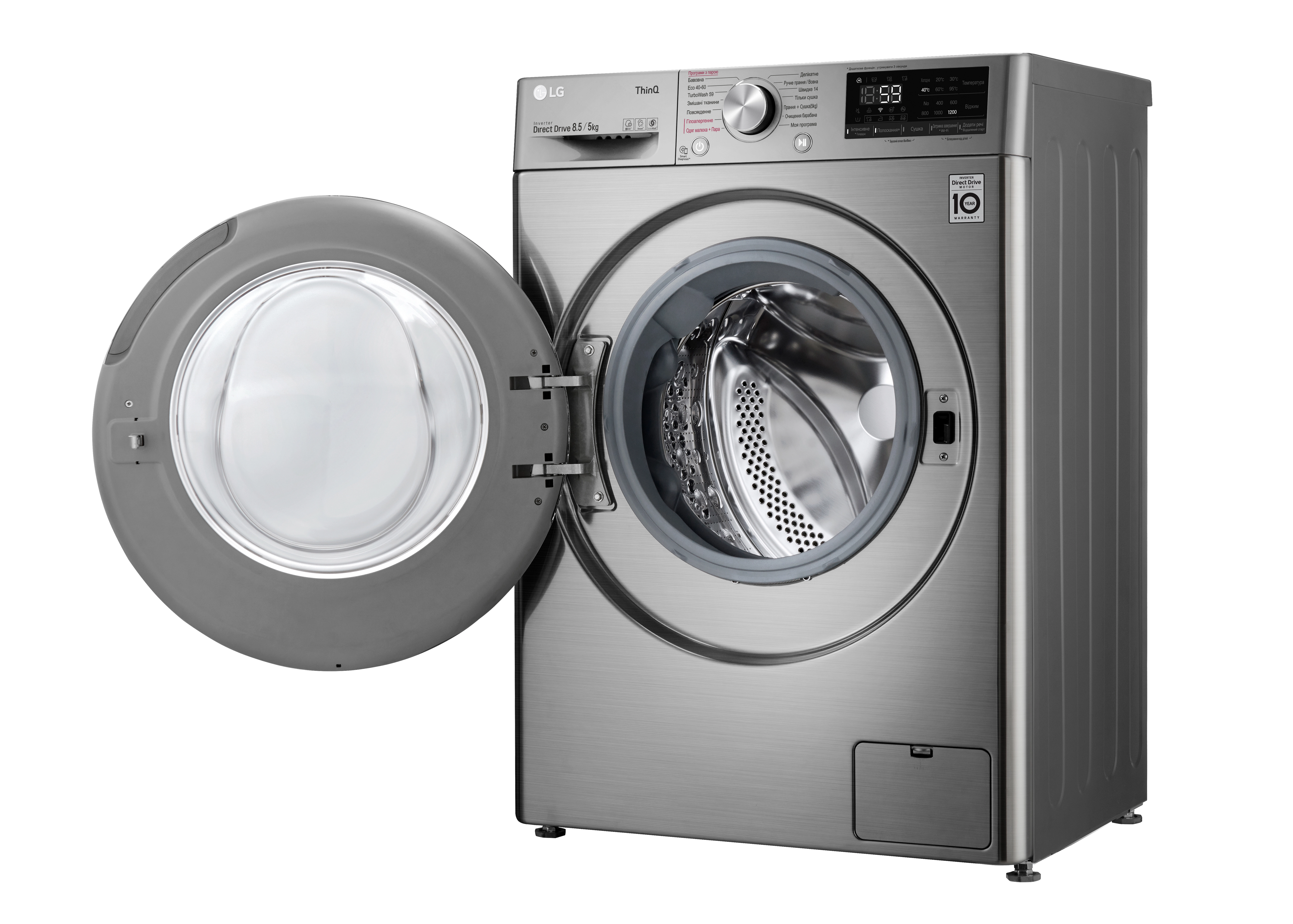 Пральна машина LG F2V5GG9T з можливістю завантаження 8,5 кг для прання та 5 кг для сушіння. Пральна машина оснащена технологією визначення властивостей тканини AI DD™, функцією швидкого прання TurboWash™, інверторним двигуном з прямим приводом Inverter Direct Drive™ та інтелектуальними функціями LG ThinQ™ (Wi-Fi).