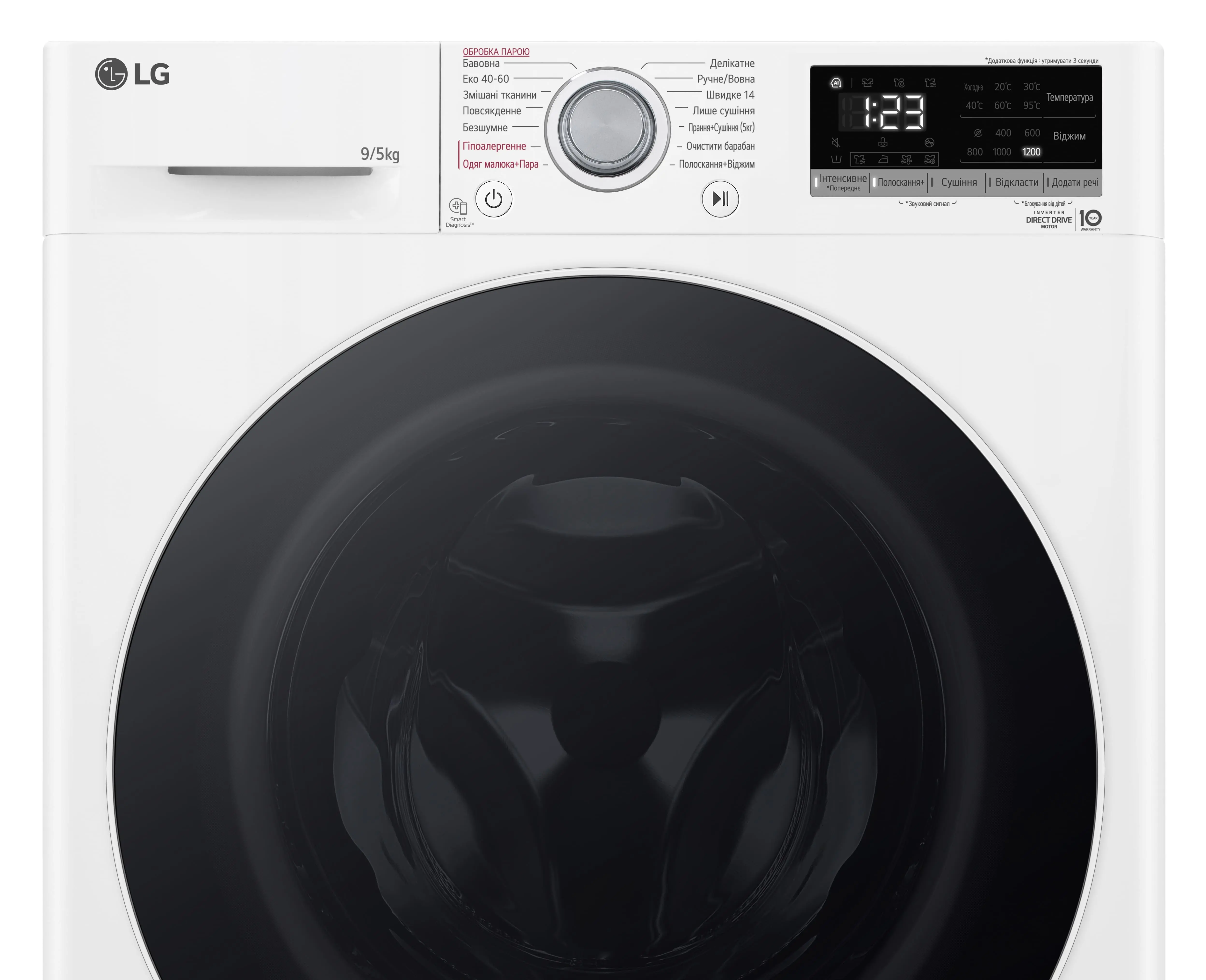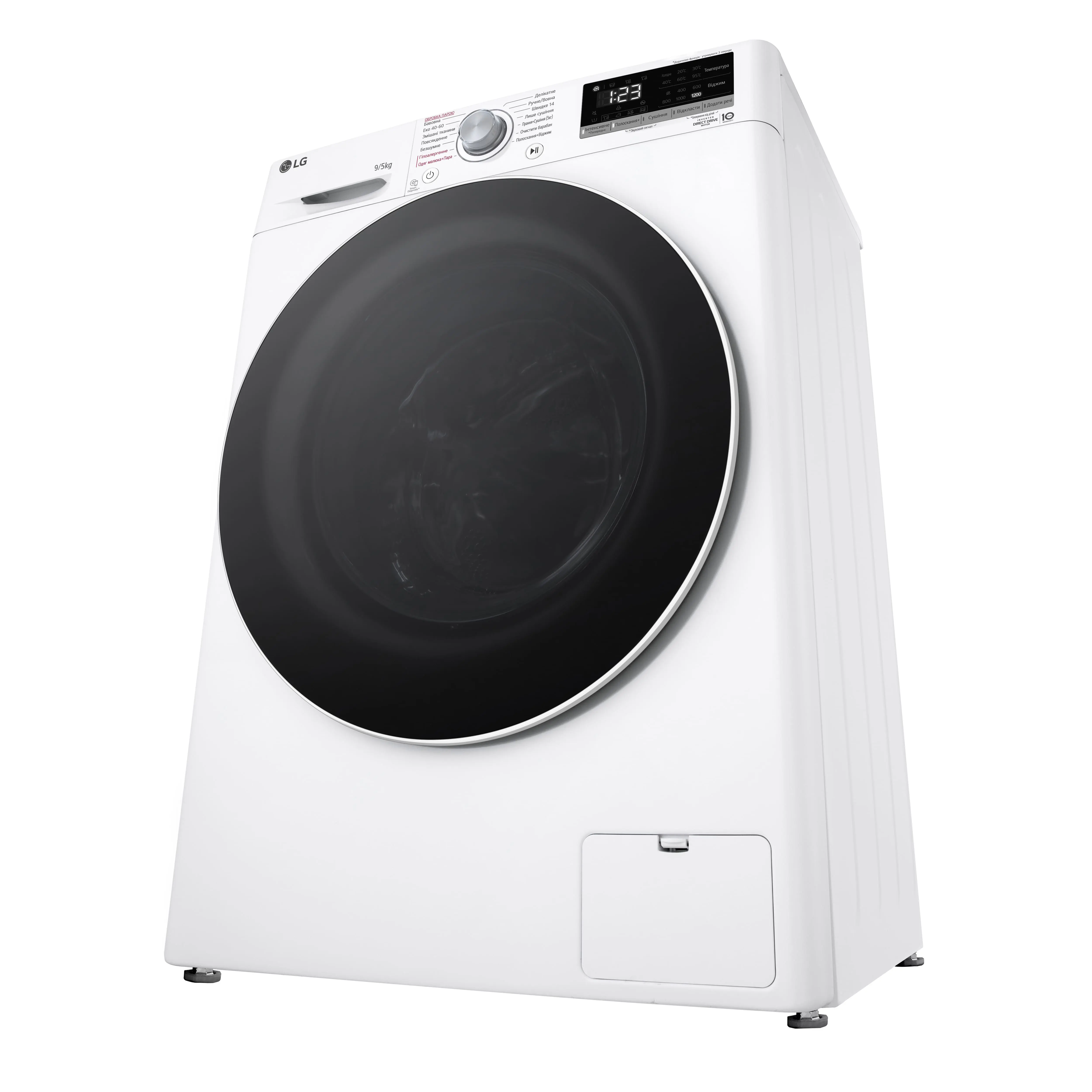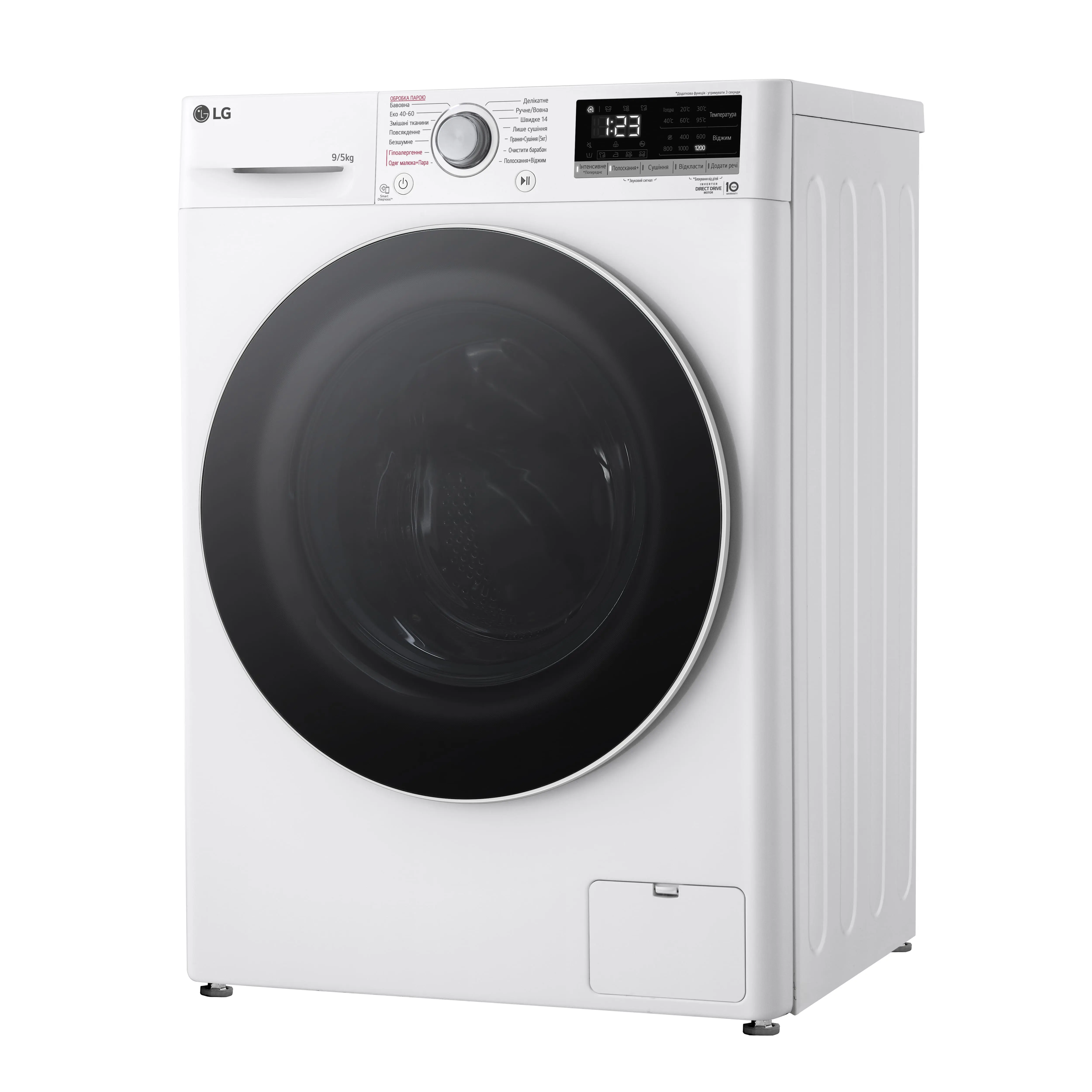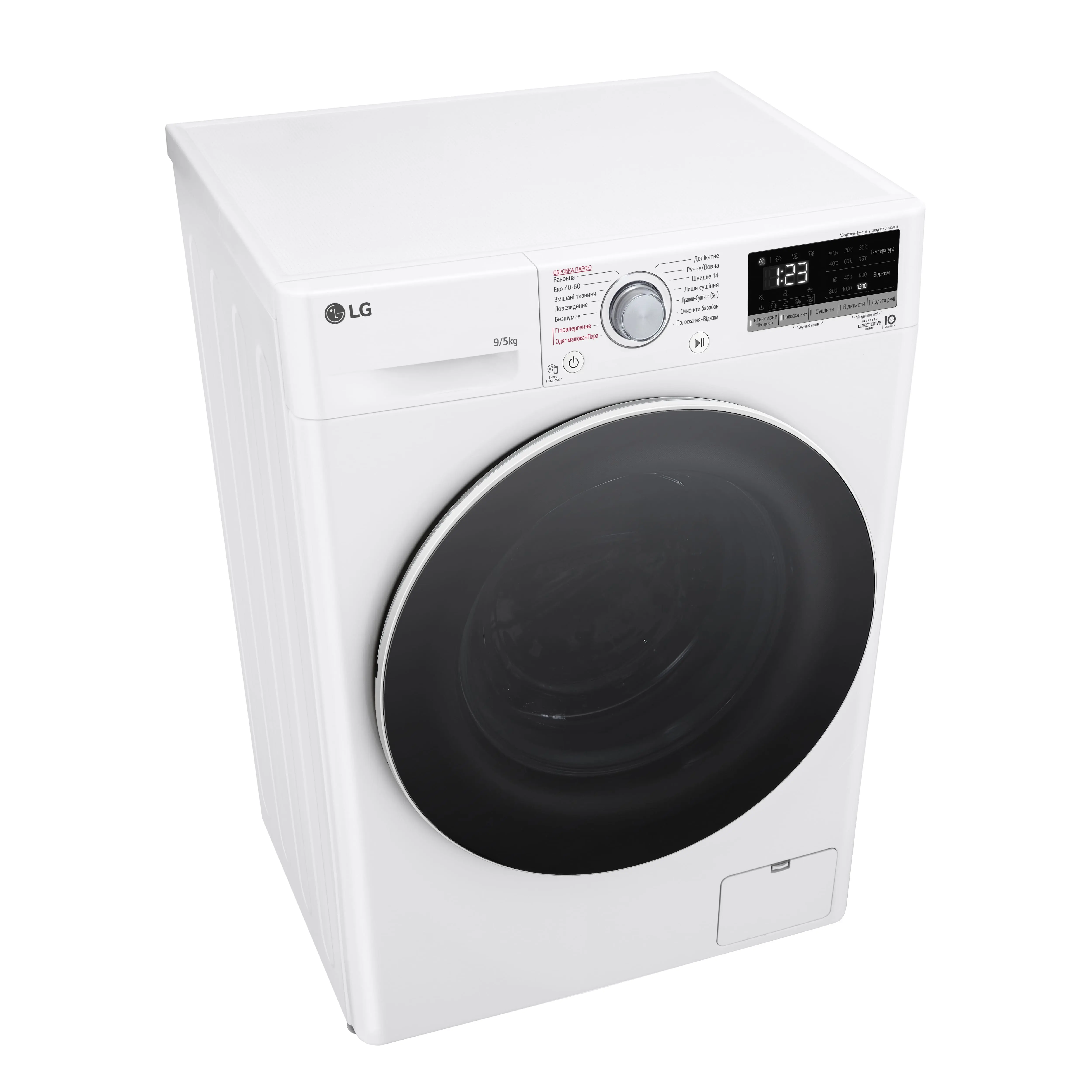 Прально-сушильна машина LG фронтальна, 9(5)кг, 1200, А, 48см, дисплей, пара, інвертор, білий