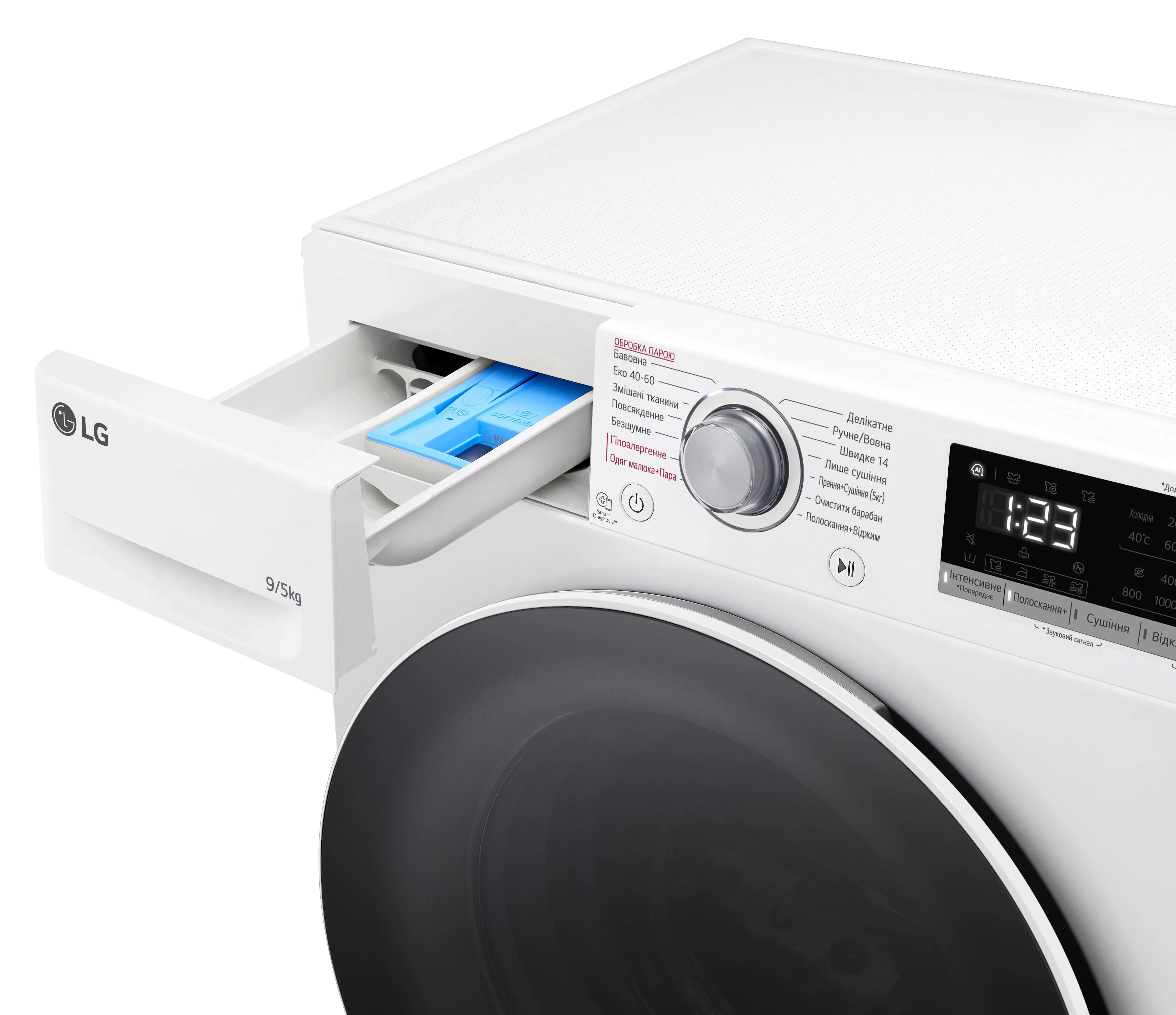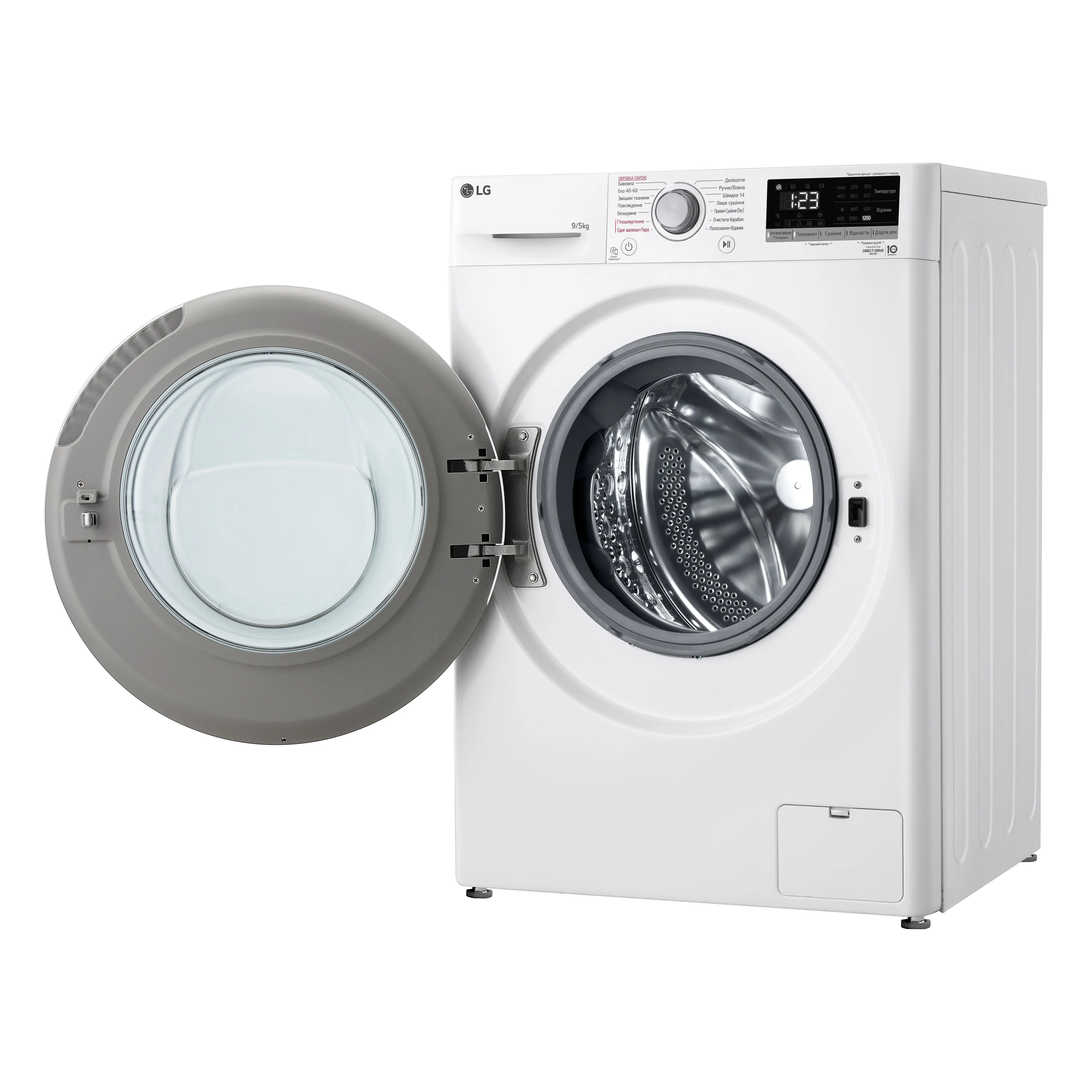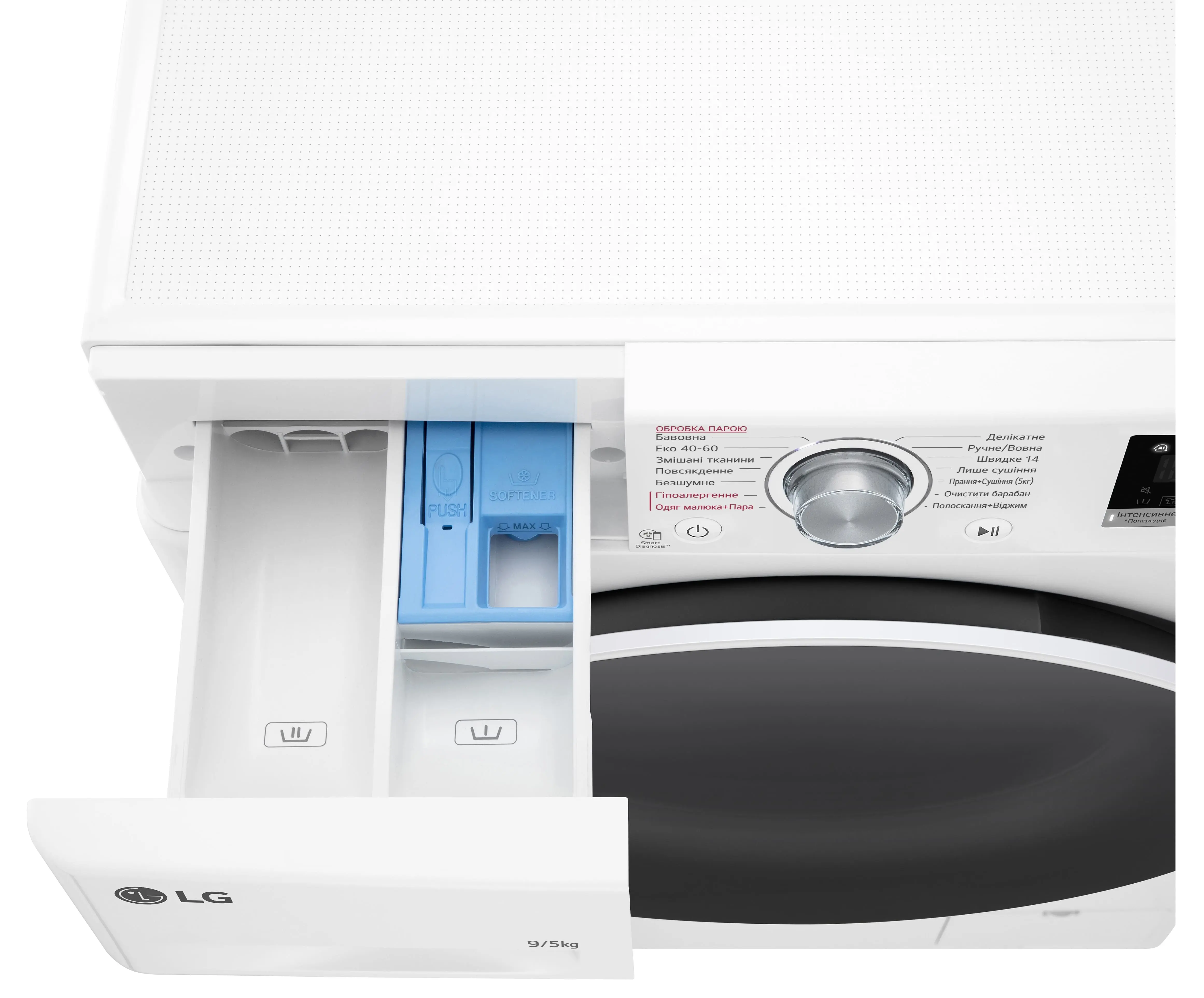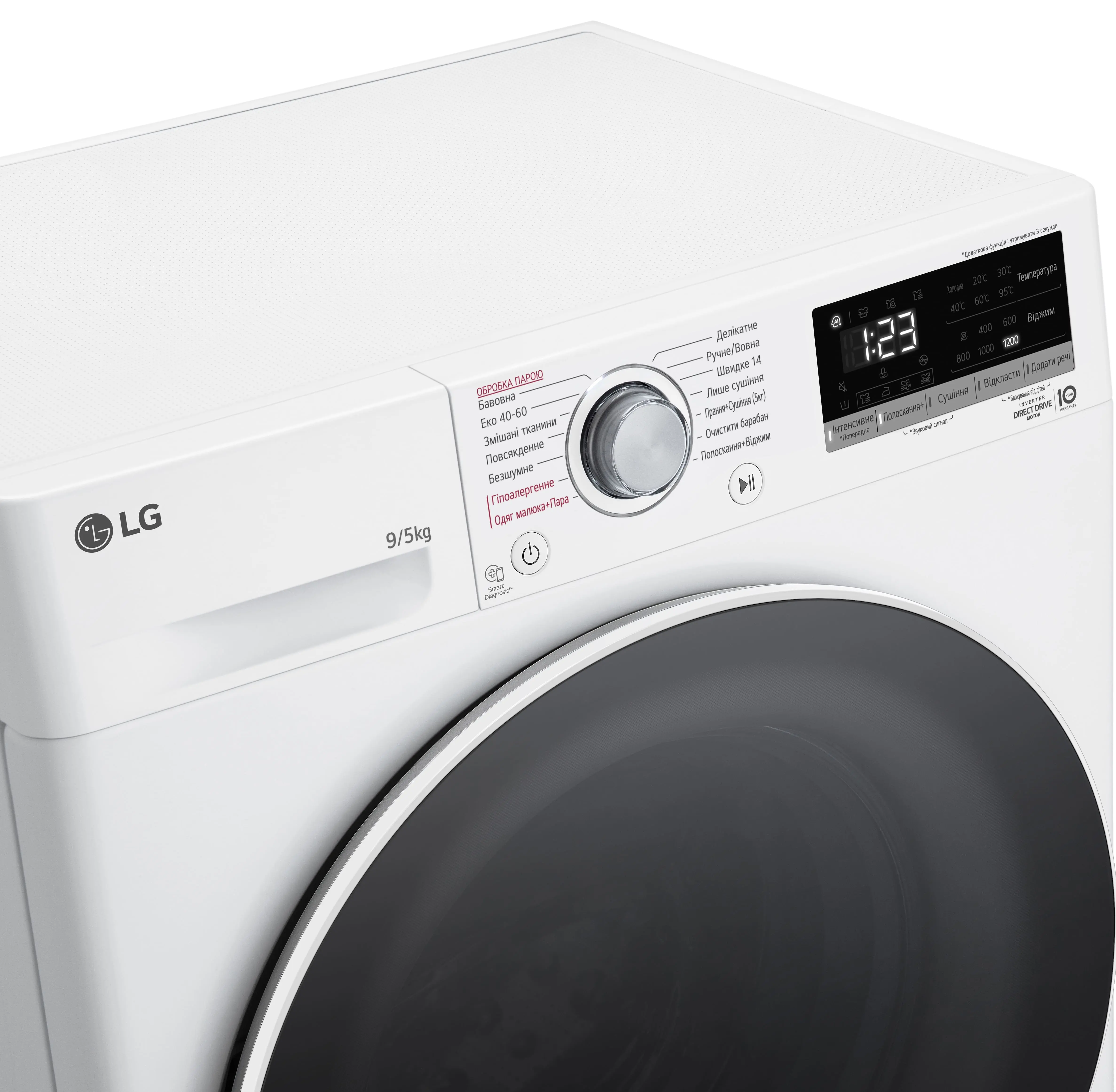 Прально-сушильна машина LG фронтальна, 9(5)кг, 1200, А, 48см, дисплей, пара, інвертор, білий