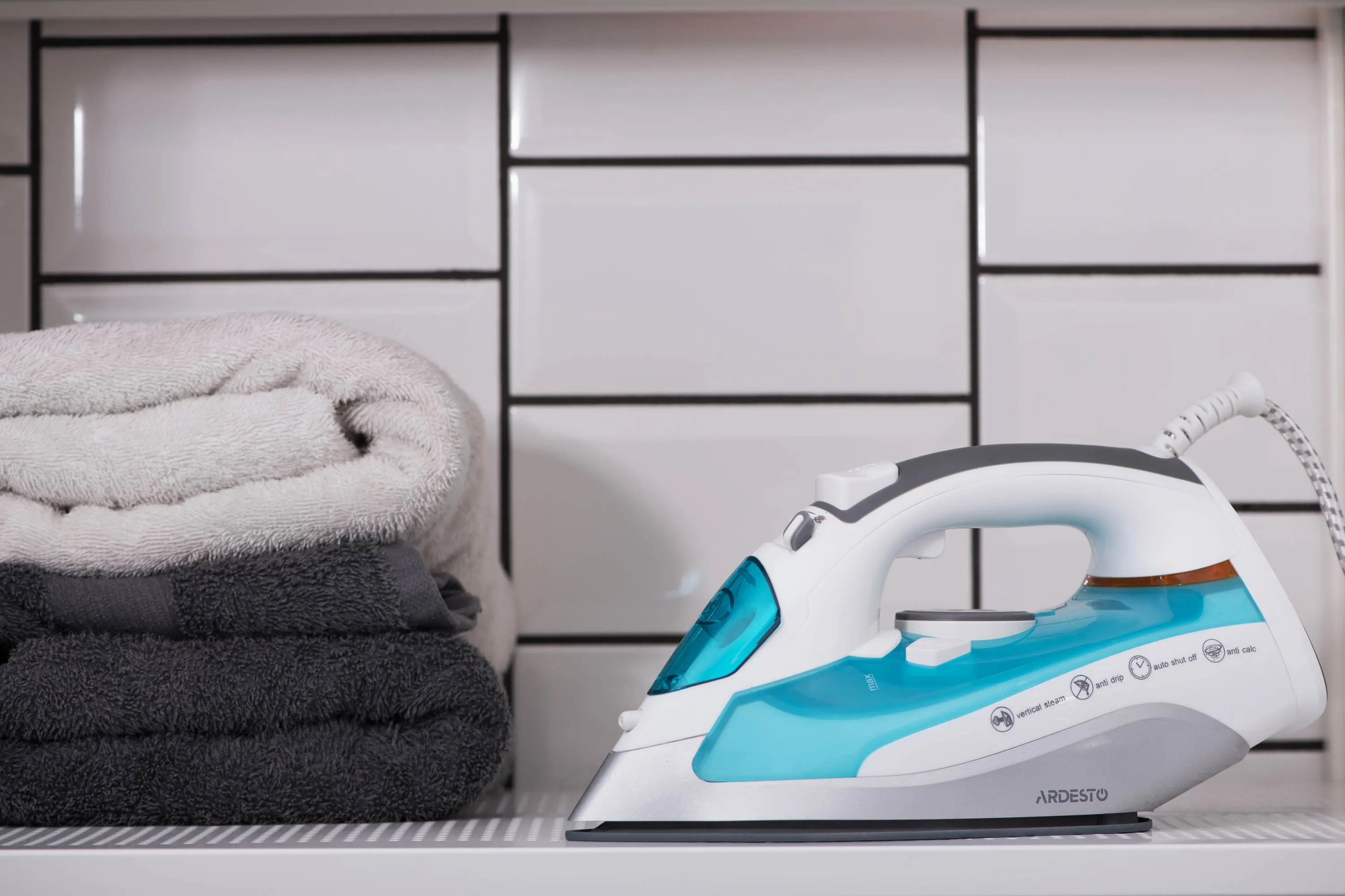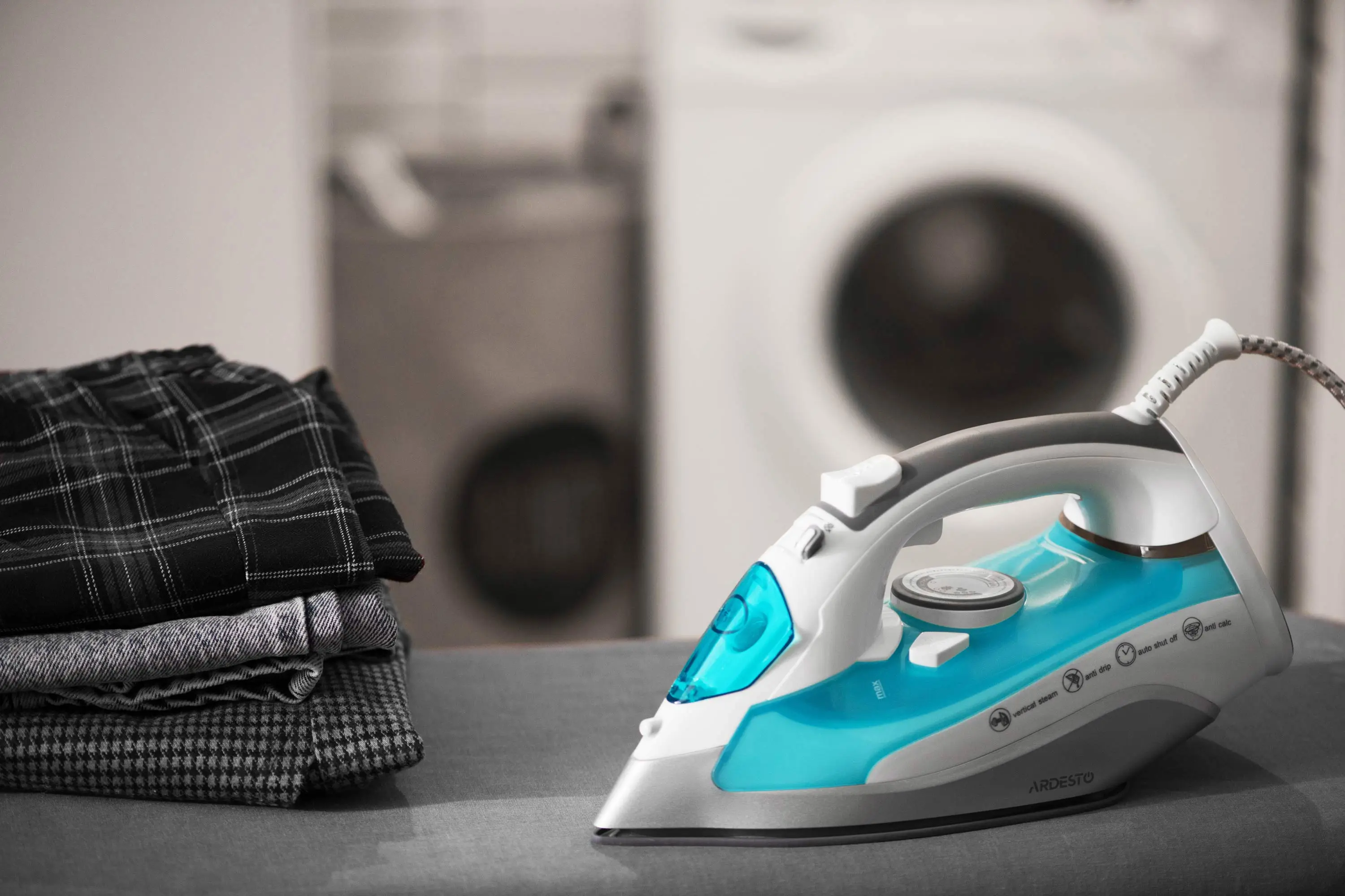 Праска у блакитному кольорі з потужністю 2200 Вт, керамічним покриттям підошви, резервуаром на 280 мл, функцією пари, а також захистом від накипу та системою "крапля-стоп".