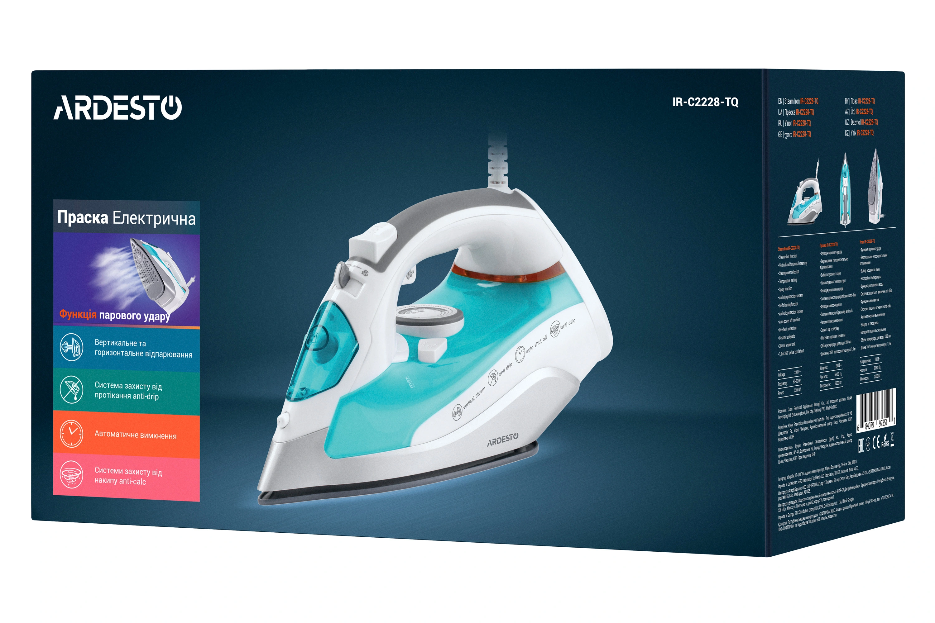 Праска Ardesto IR-C2228-TQ, 2200Вт, 280мл, паровий удар-100гр, керамічна підошва, голубий