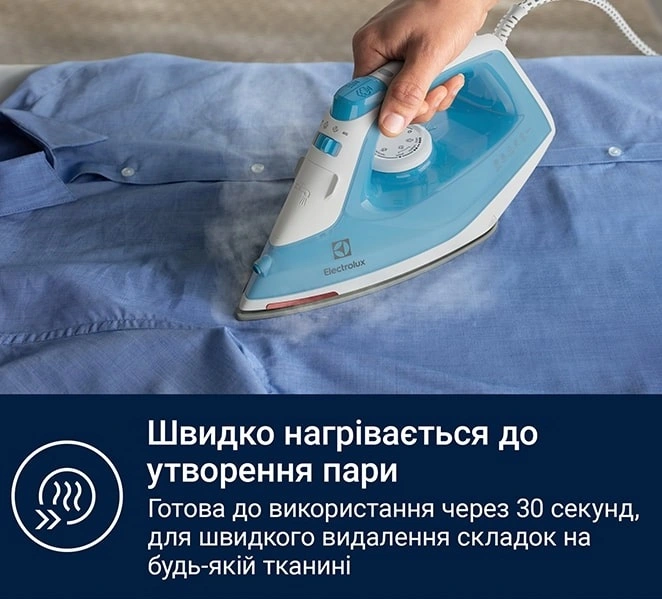 Праска Electrolux, 2300Вт, 250мл, паровий удар 110гр, керамічна підошва, синьо-білий