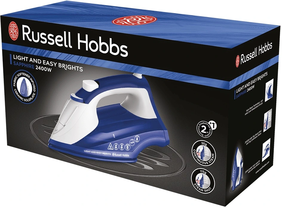 Праска Russell Hobbs Light & Easy Brights Sapphire, 2400Вт, 240мл, паровий удар -115гр, постійна пар