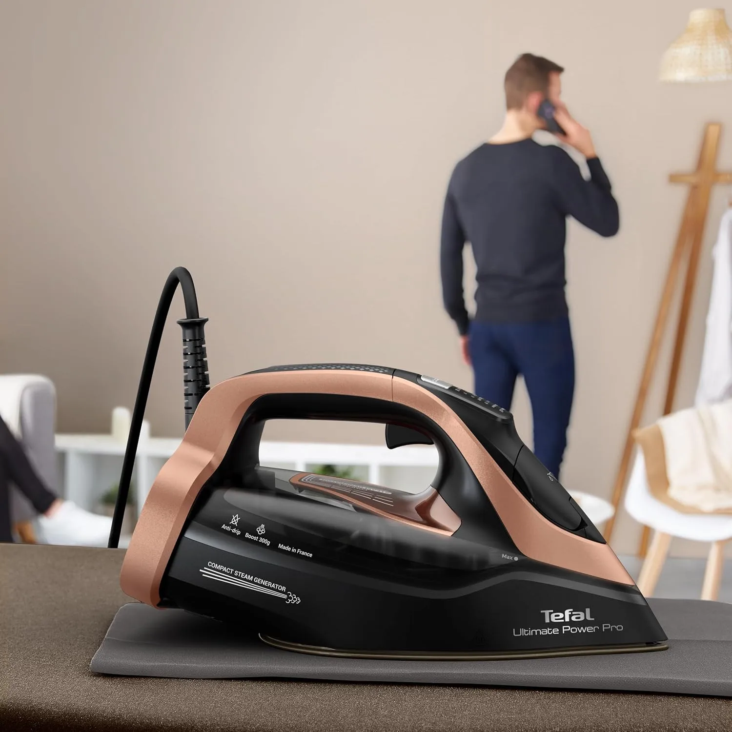 Праска Tefal Ultimate Power Pro створена для того, щоб змінити уявлення про догляд за одягом, завдяки передовій технології, яка поєднує в собі потужність парової праски та зручність відпарювання. Ця революційна парова праска подає до 2 разів більше пари на тканину, завдяки регулятору потужності подачі пари, що забезпечує потрібну кількість пари, 5 автоматичним попереднім налаштуванням на світлодіодному дисплеї для дбайливого догляду за одягом без ризику підгоряння, а також низці розширених функцій.