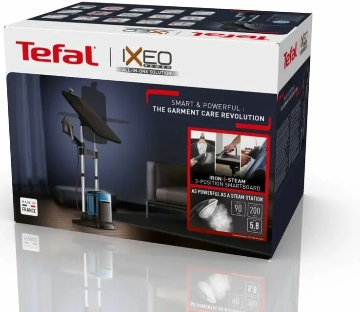 Прасувальна система Tefal Ixeo Power QT2022E1 із системою «All-in-One» – це інноваційна парова прасувальна система з технологією високого тиску для бездоганно потужної пари та унікальною трипозиційною дошкою для комфортного прасування та відпарювання.