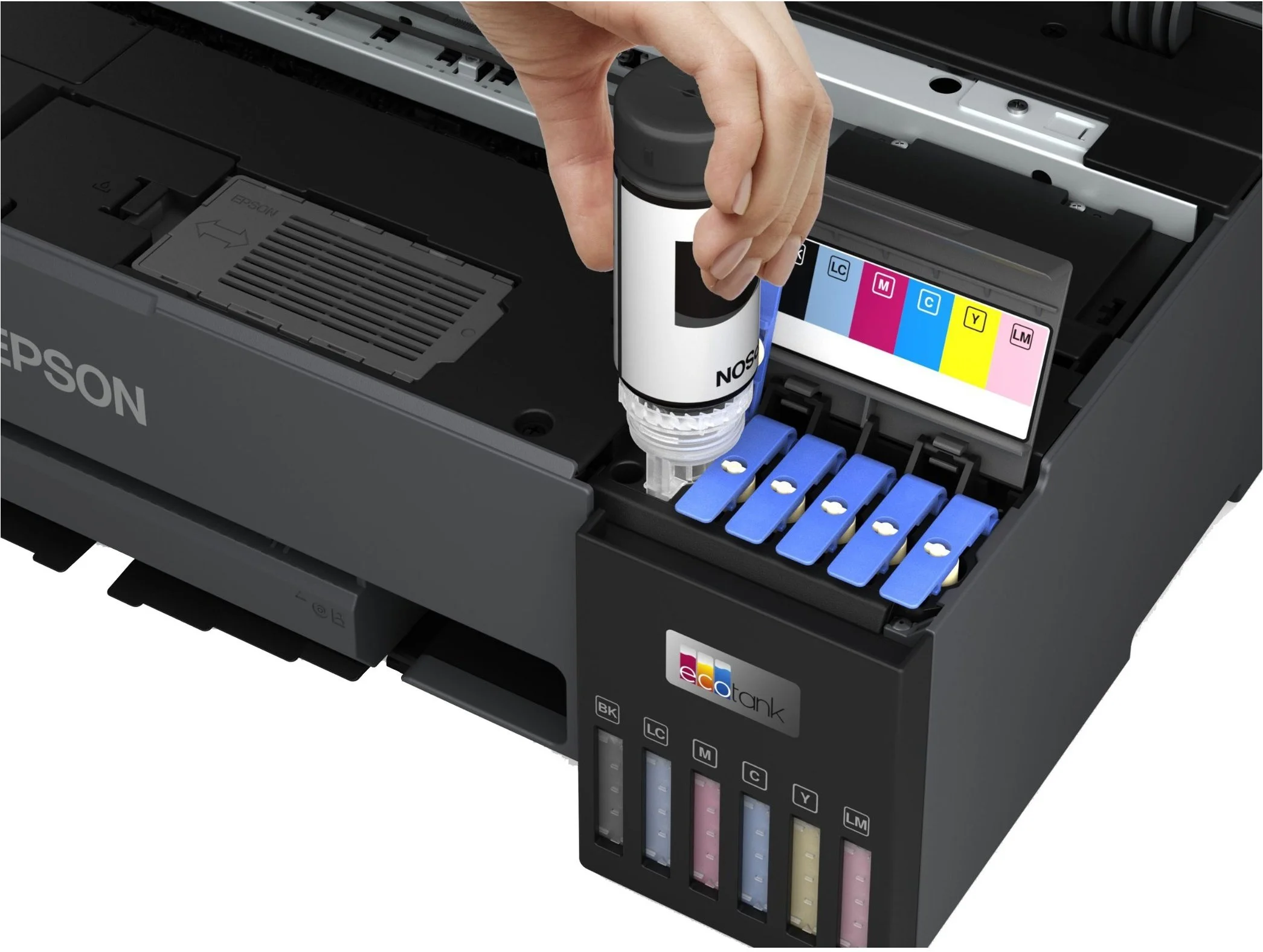Попрощайтеся з дороговартісними картриджами. Завдяки місткому 6-колірному резервуару для чорнил із контейнерами об’ємом 70 мл принтер L18050 забезпечує низьку собівартість друку, друкуючи до 1500 кольорових фотографій розміром 10x15 см / 2600 чорно-білих і 5400 кольорових сторінок, використовуючи чорнила, що постачаються в комплекті