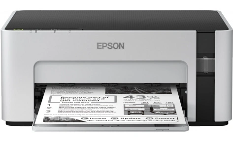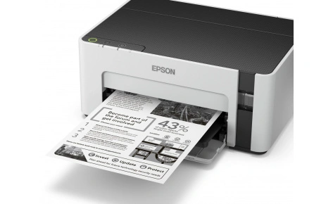 Монохромний принтер Epson М1100 - це компактний і зручний у використанні струменевий принтер з великими ємностями для чорнила об'ємом 120 мл. замість картриджів. Завдяки своїй унікальній конструкції Epson M1100 дозволяє друкувати документи з рекордно низькою собівартістю, а за рахунок використання пігментних чорнил відбитки миттєво висихають і не розмазуються при попаданні води або механічного впливу.