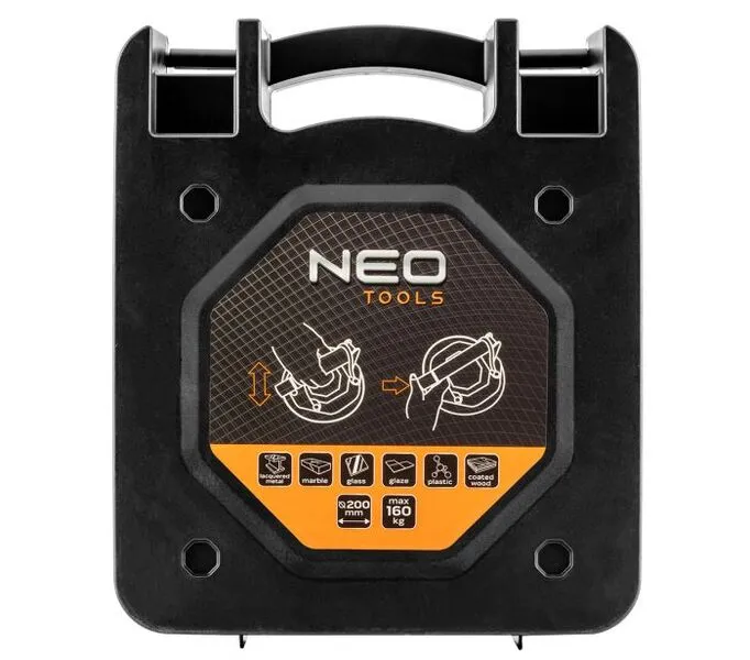 Присоска вакуумна Neo Tools, одинарна, пластиковий корпус, діаметр 200мм, кейс, 160кг