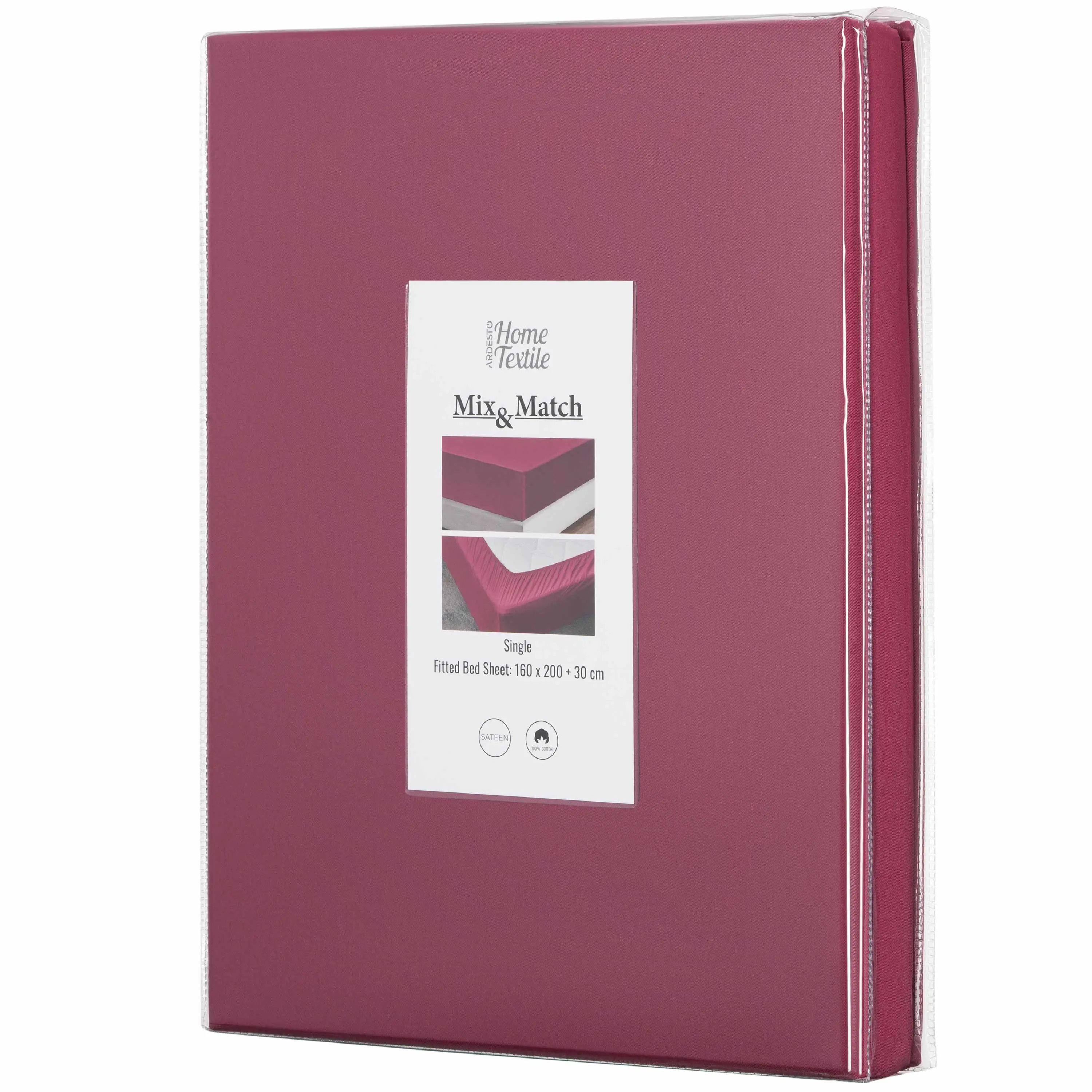 Простирадло на резинці Ardesto Mix&Match, 160х200+30см, 100% бавовна, сатин, бордовий