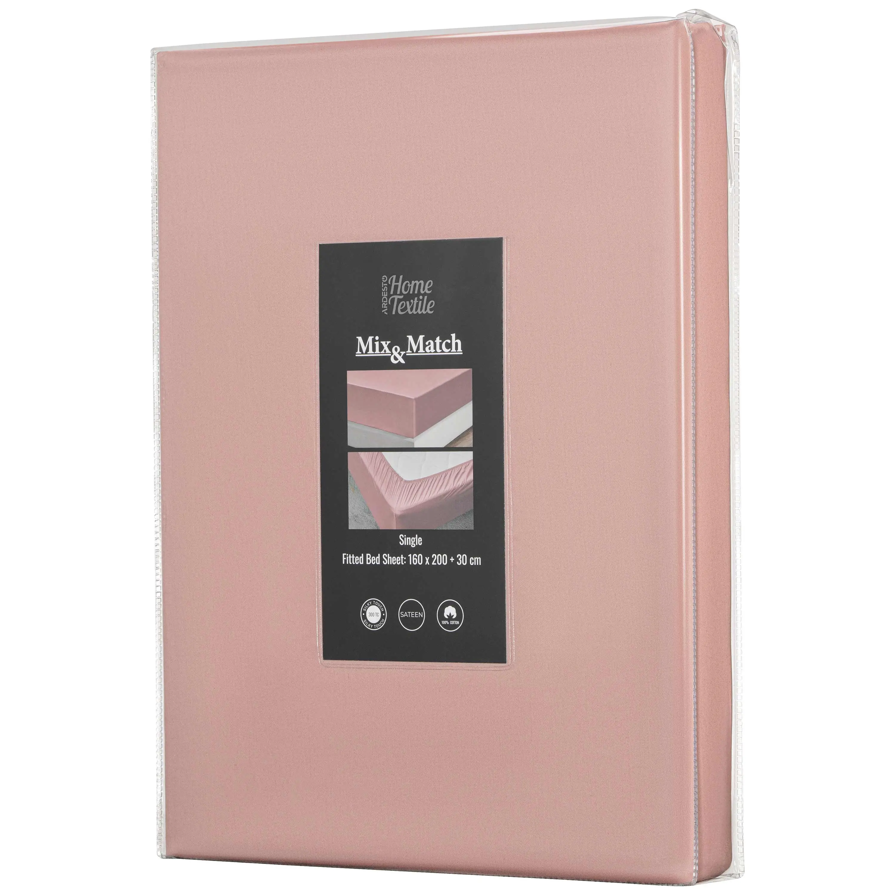 Простирадло на резинці Ardesto Mix&Match Premium, 160х200+30см, 100% бавовна, сатин, рожевий світлий