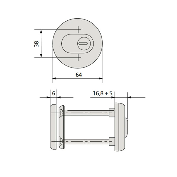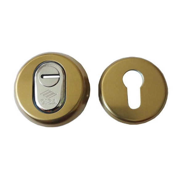 Протектор CISA 1.06460.51.0.64 встановлюється на вхідні двері разом із замками і серцевинами стандарту EURO DIN. Монтується накладним методом. Корпус із обертовою вставкою з вуглецевої сталі забезпечує захист від висвердлювання. Наскрізні стальні гвинти та форма броненакладки не дозволяє охопити її, що створює захист від виламування. Висота (або товщина) протектора складає 16,8 мм, діаметр – 64 мм. В бронзовому кольорі найкраще буде доповнювати двері із темної палітри.
