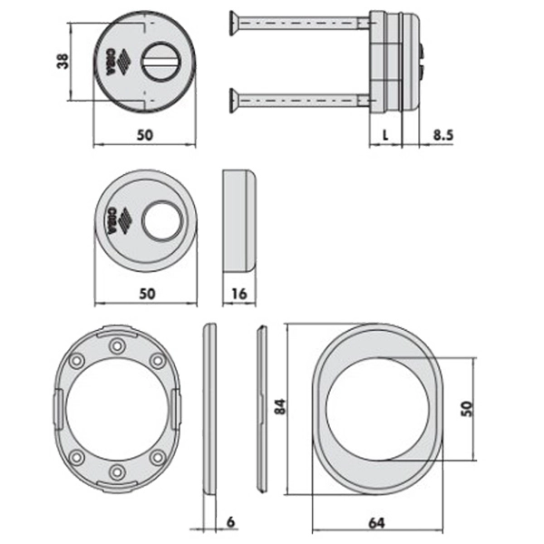Висота (або товщина) протектора складає 16 мм, діаметр – 50 мм. Особливістю цієї моделі став захист ключового отвору. Він забезпечується обертовою вставкою зі сталі, яка забезпечує ефективну протидію спробам висвердлювання. Наскрізні стальні гвинти та форма броненакладки захищають від виламування та не дають можливість навіть захопити її.