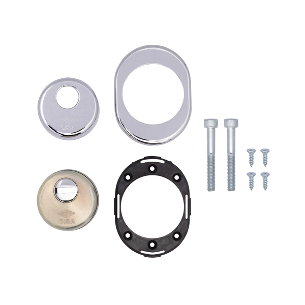 Комплектується зовнішньою декоративною накладкою овальної форми для надання дверному полотну більш охайного вигляду. В кольорі “хром полірований” найкраще буде доповнювати двері відповідних сірих відтінків.
