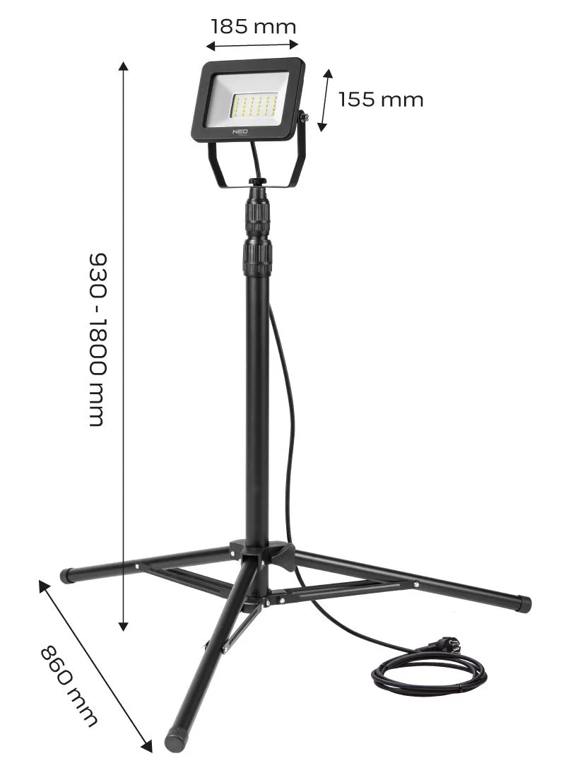 Прожектор Neo Tools, 220В, 4500лм, 50Вт, кабель 3м з вилкою, на штативі 1.8 м, алюмінієвий, IP65