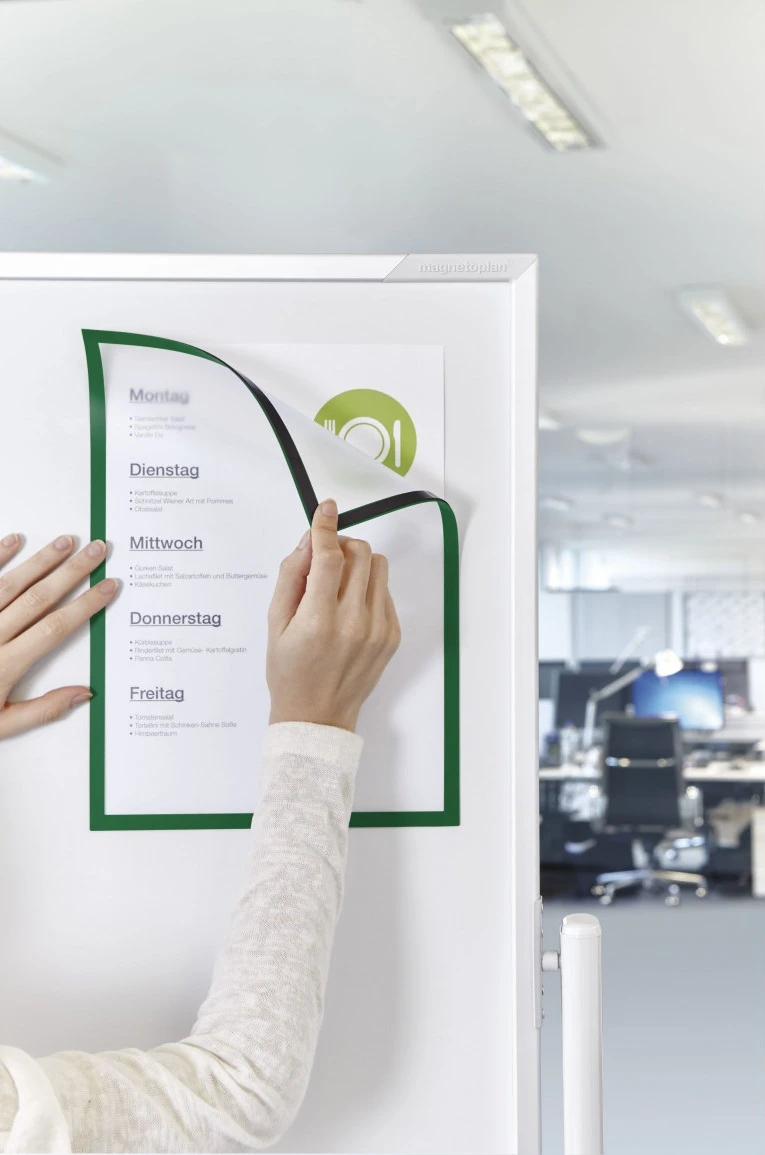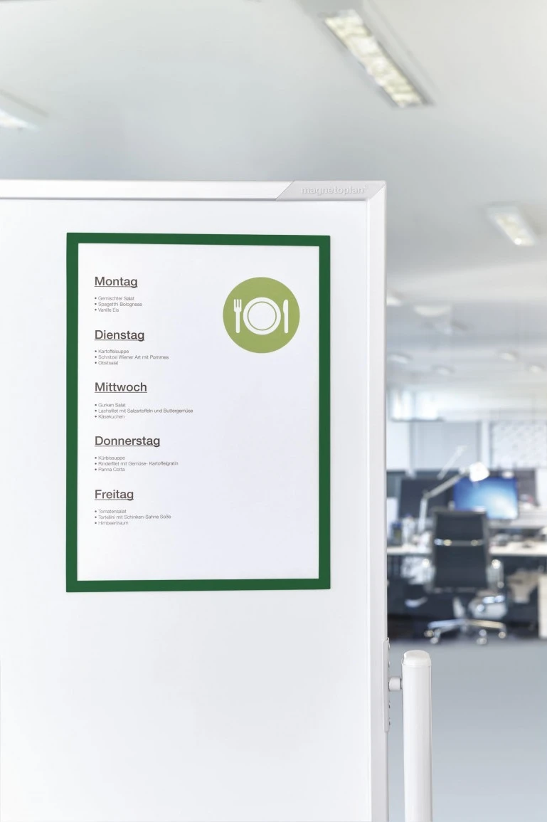 Рамки магнітні інформаційні magnetofix Frame STANDARD A4 з окантовкою зеленого кольору.