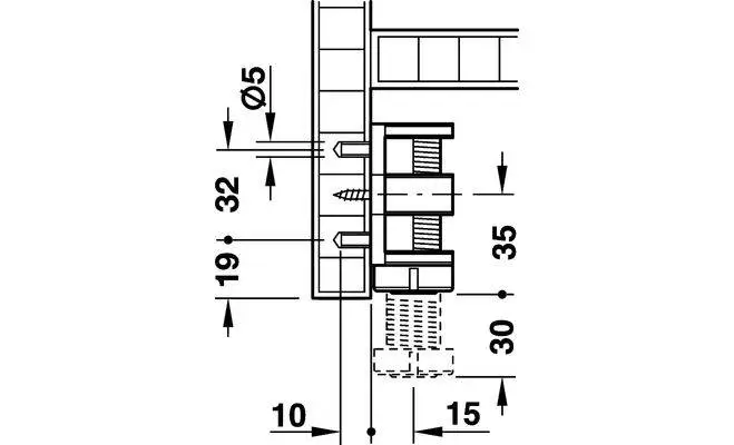 Матеріал: пластмаса. Колір чорний. Виконання: ножна тарілка стаціонарна. Регулювання висоти: +30 мм. Привід: за допомогою викрутки, плоский шліц. Несуча спроможність: близько 80 кг.