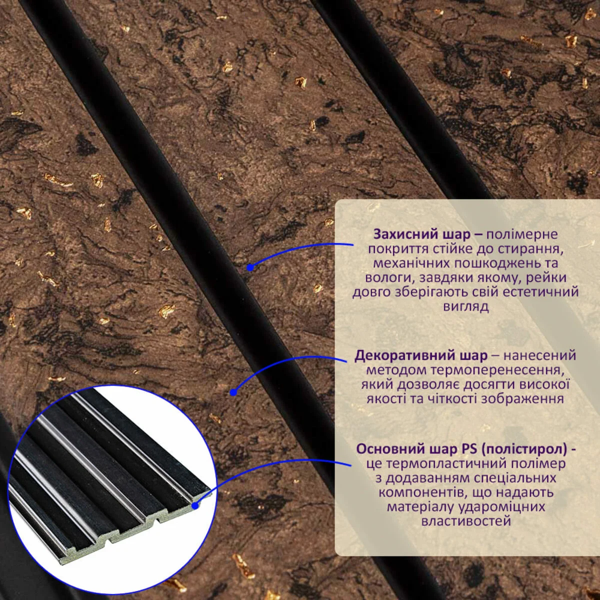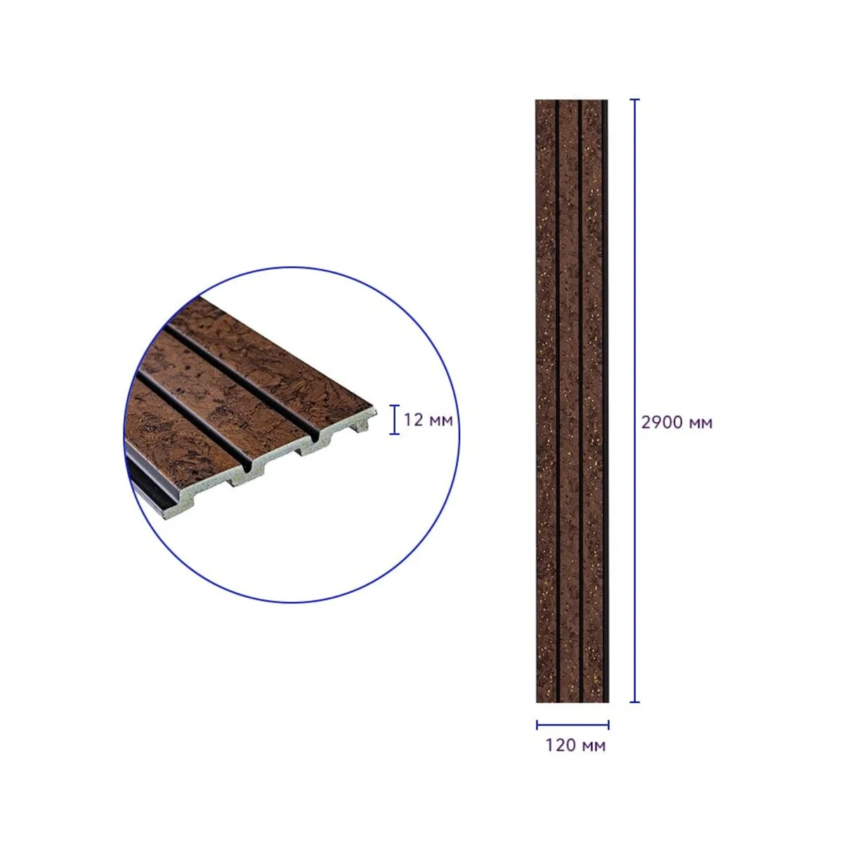 Рейка декоративная PS 2900х120х12мм Темно-коричневый с золотыми вкраплениями SW-00001737