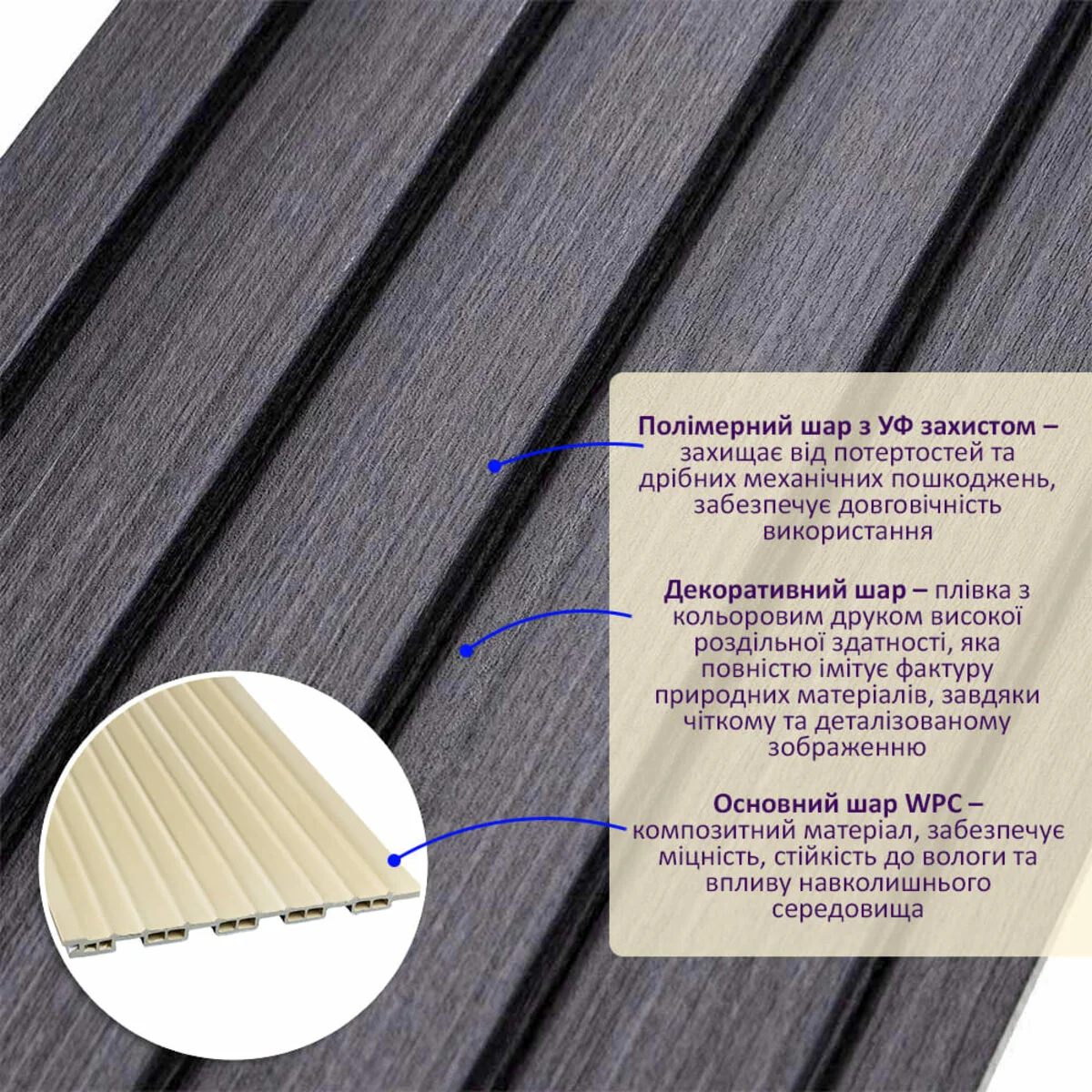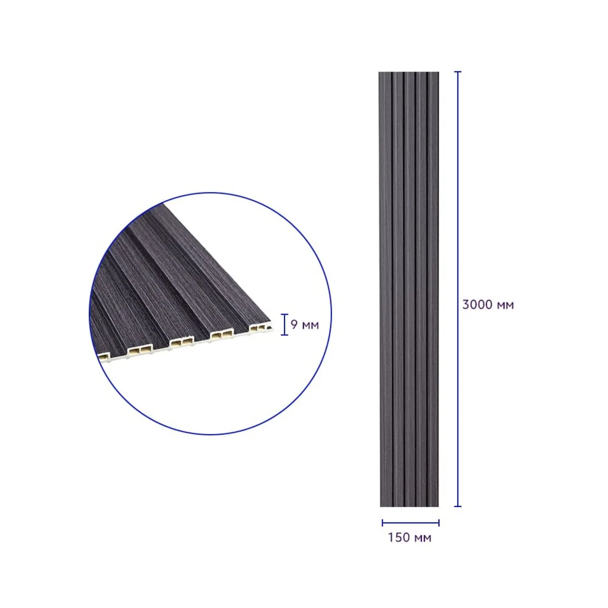 Рейка декоративная WPC стеновая 3000х150х9мм Графит SW-00001871