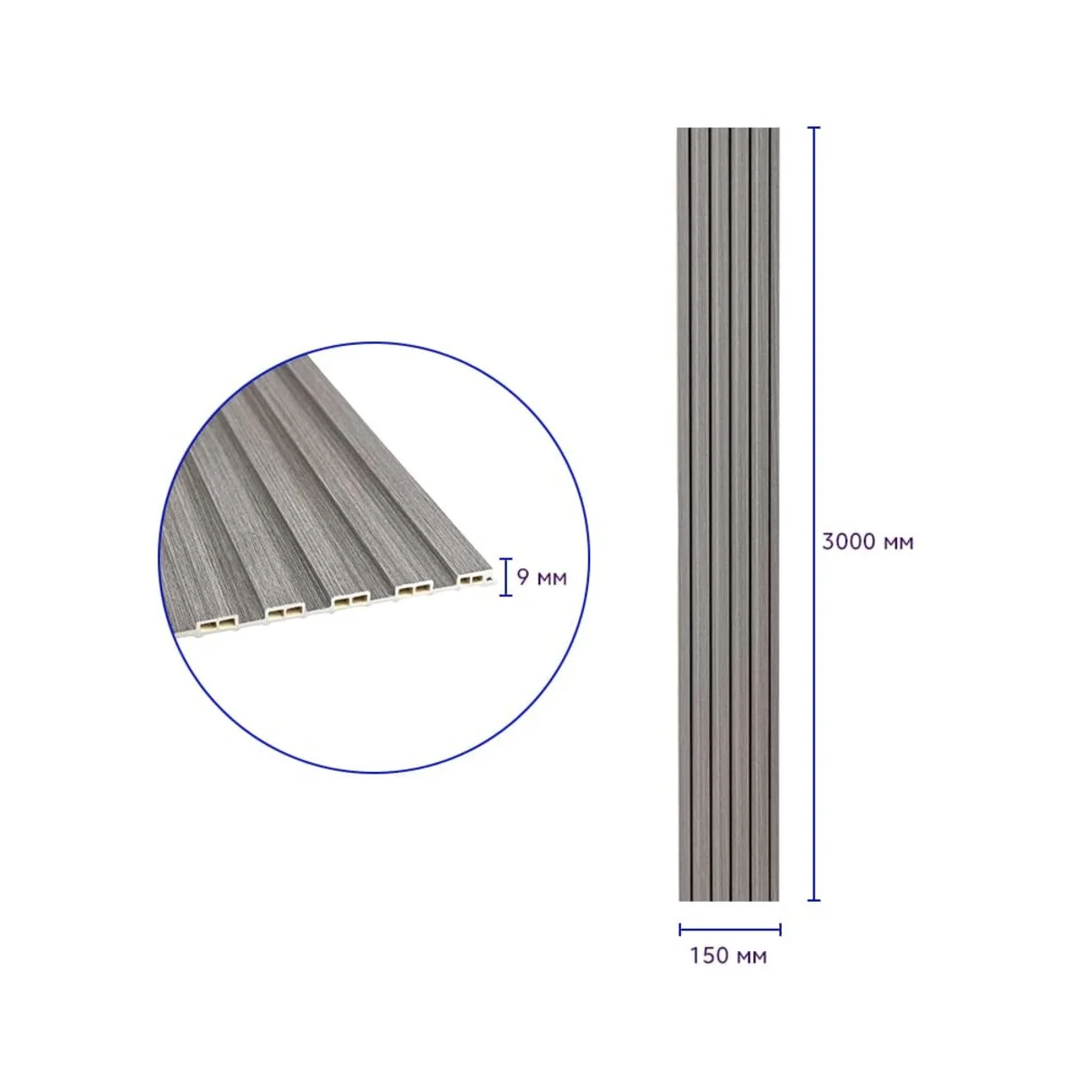 Рейка декоративная WPC стеновая 3000х150х9мм Серая SW-00001870