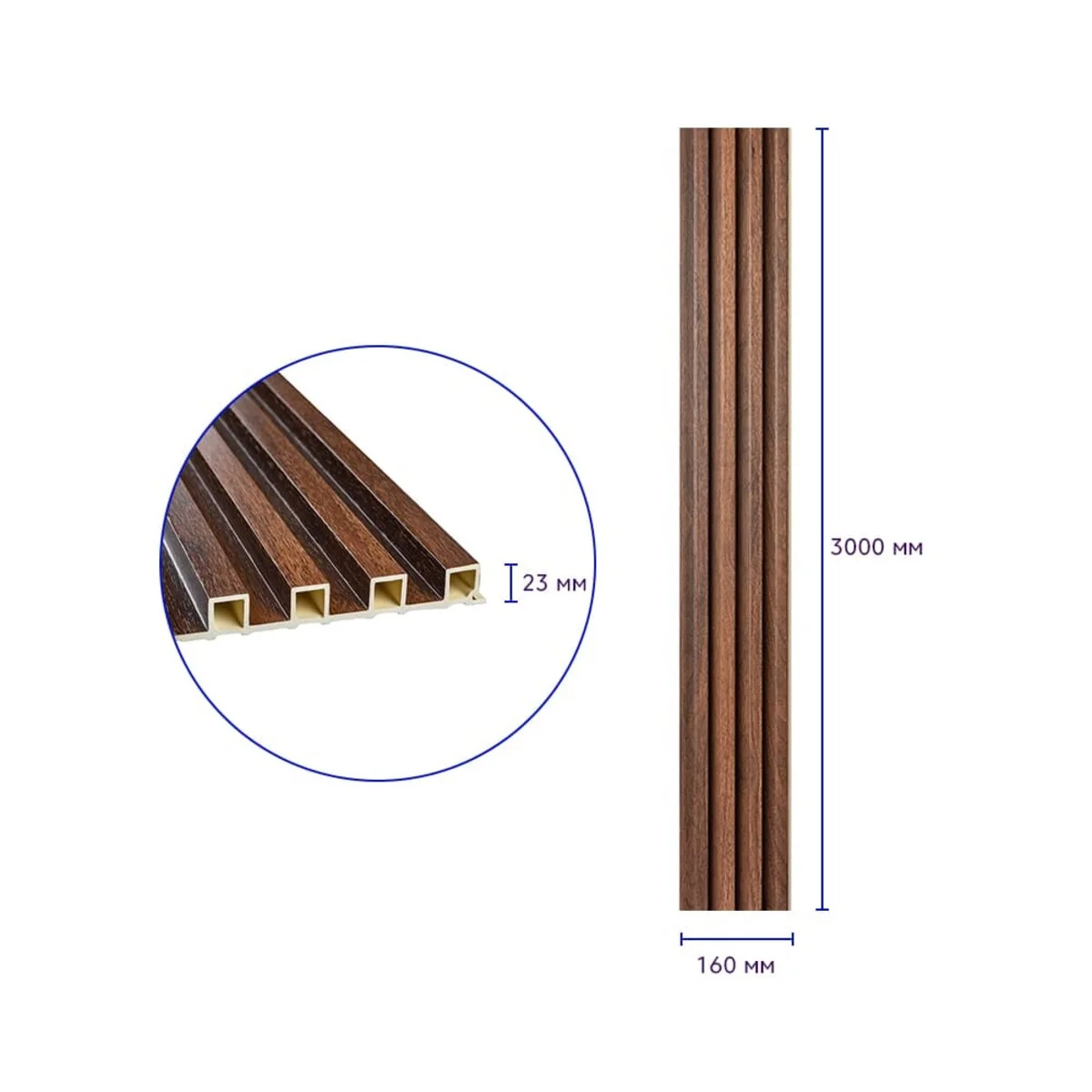 Рейка декоративная WPC стеновая 3000х160х23мм Каштан SW-00001536