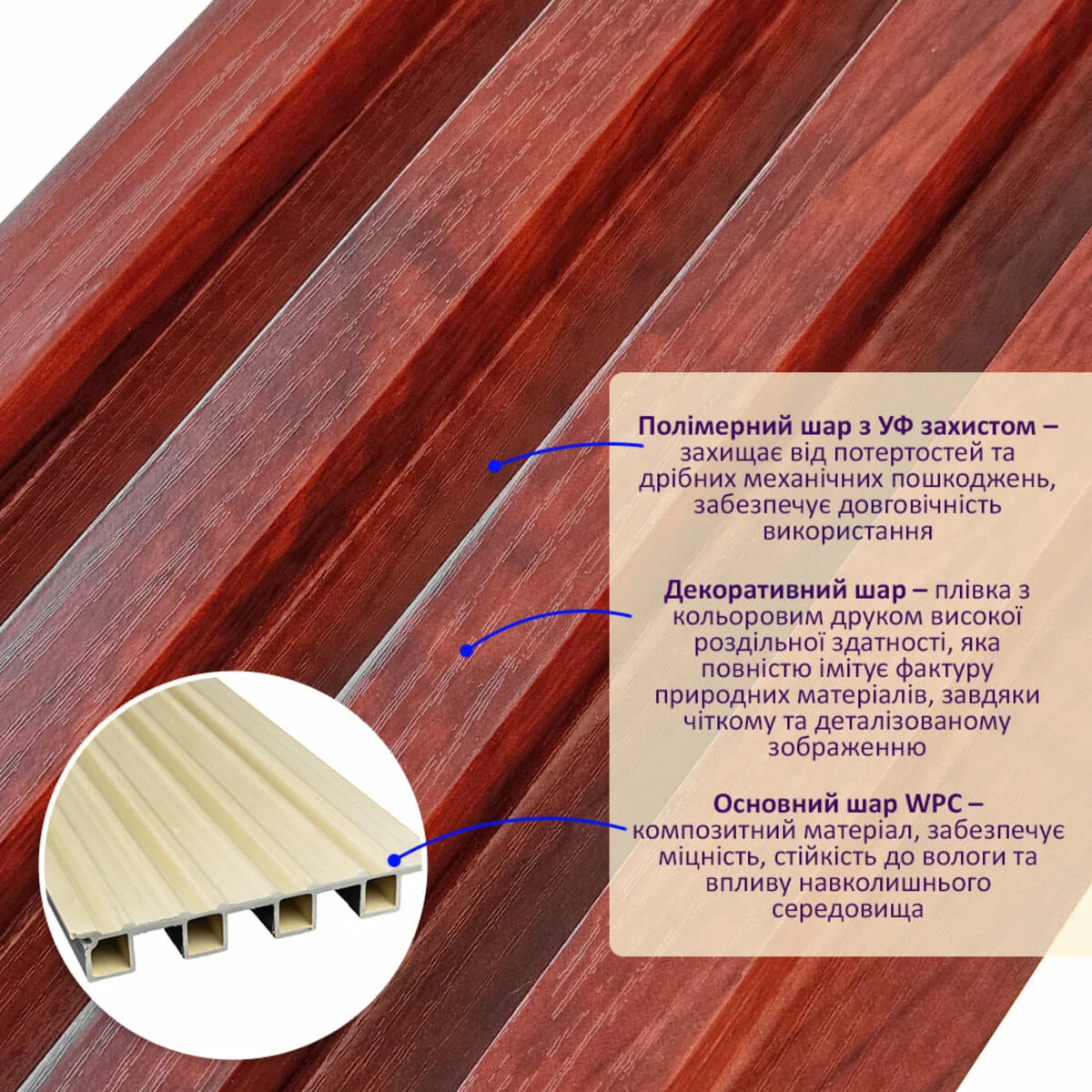 Рейка декоративна WPC стінова 3000х160х23мм Махагон SW-00001531-