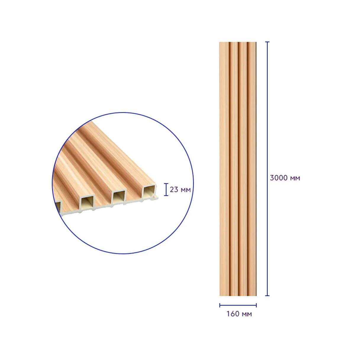 Рейка декоративная WPC стеновая 3000х160х23мм Светлый дуб SW-00001854