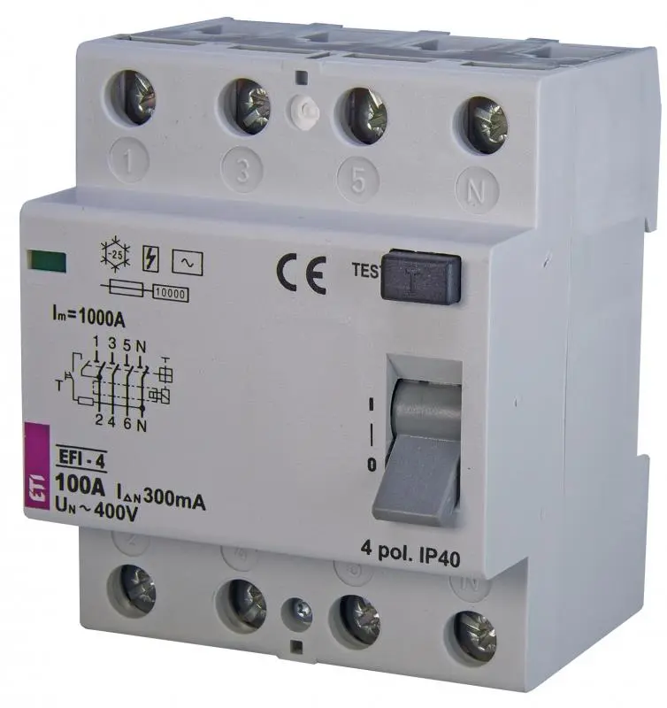 Реле диференційне ETI, (ПЗВ) EFI-4 100/0,3 тип AC (10kA)