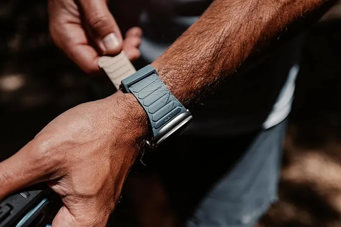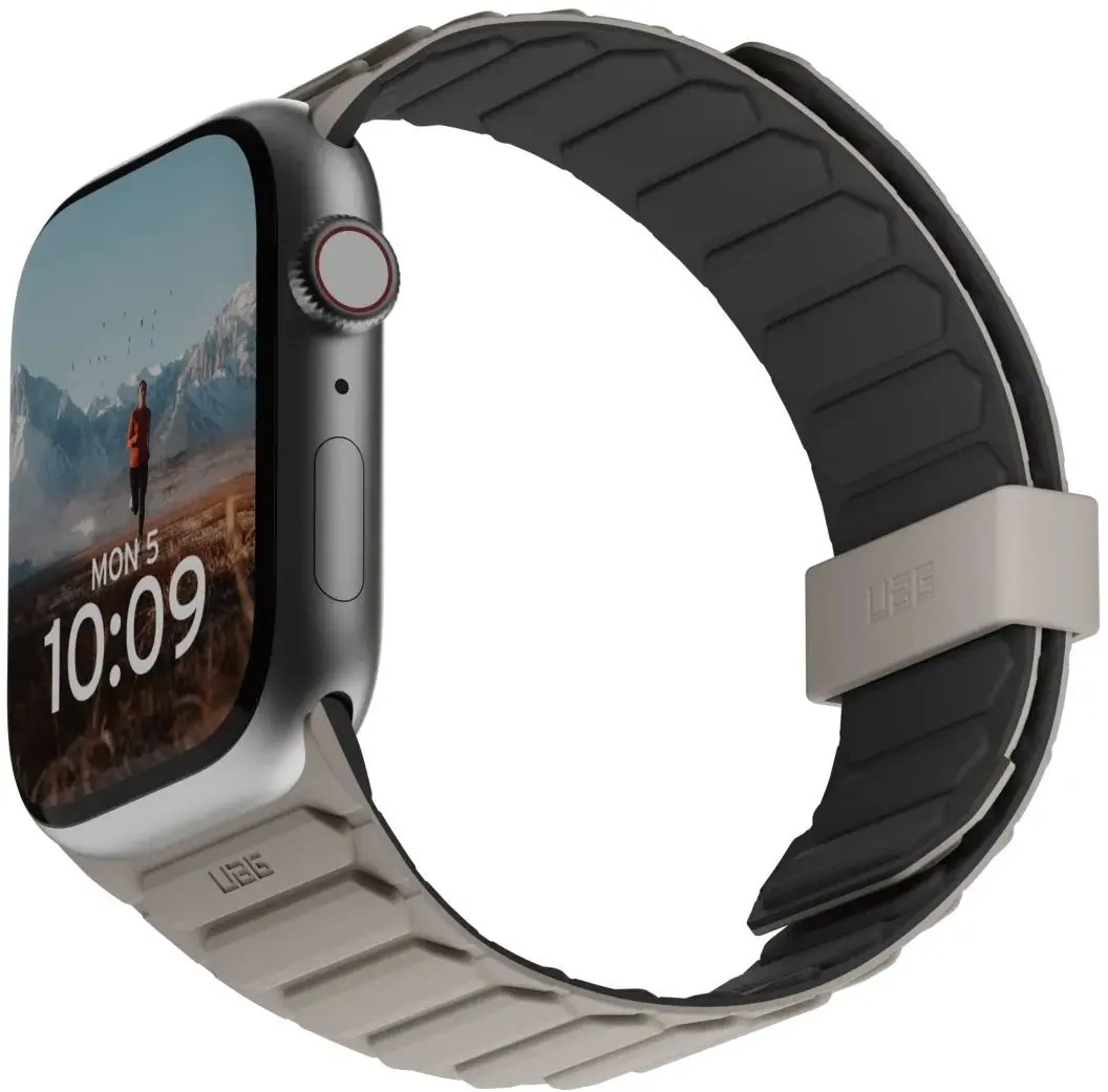 UAG Pathfinder - це стильний ремінець для Apple Watch. Покращте свій досвід користування розумним годинником за допомогою ремінця Pathfinder з реверсивним магнітним кріпленням. Він оснащений потужними магнітами, прихованими всередині ремінця, що дозволяють просто і швидко обгорнути ремінець навколо зап'ястя для точного прилягання.