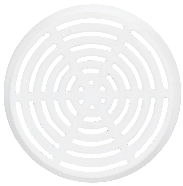 Вентиляційна решітка, кругла, з захисною кромкою, матеріал: пластмаса, колір: білий, діаметр з кромкою 65 мм, діаметр без кромки 60 мм, товщина кромки 2 мм, глибина решітки 9 мм, для монтажу шляхом врізання.