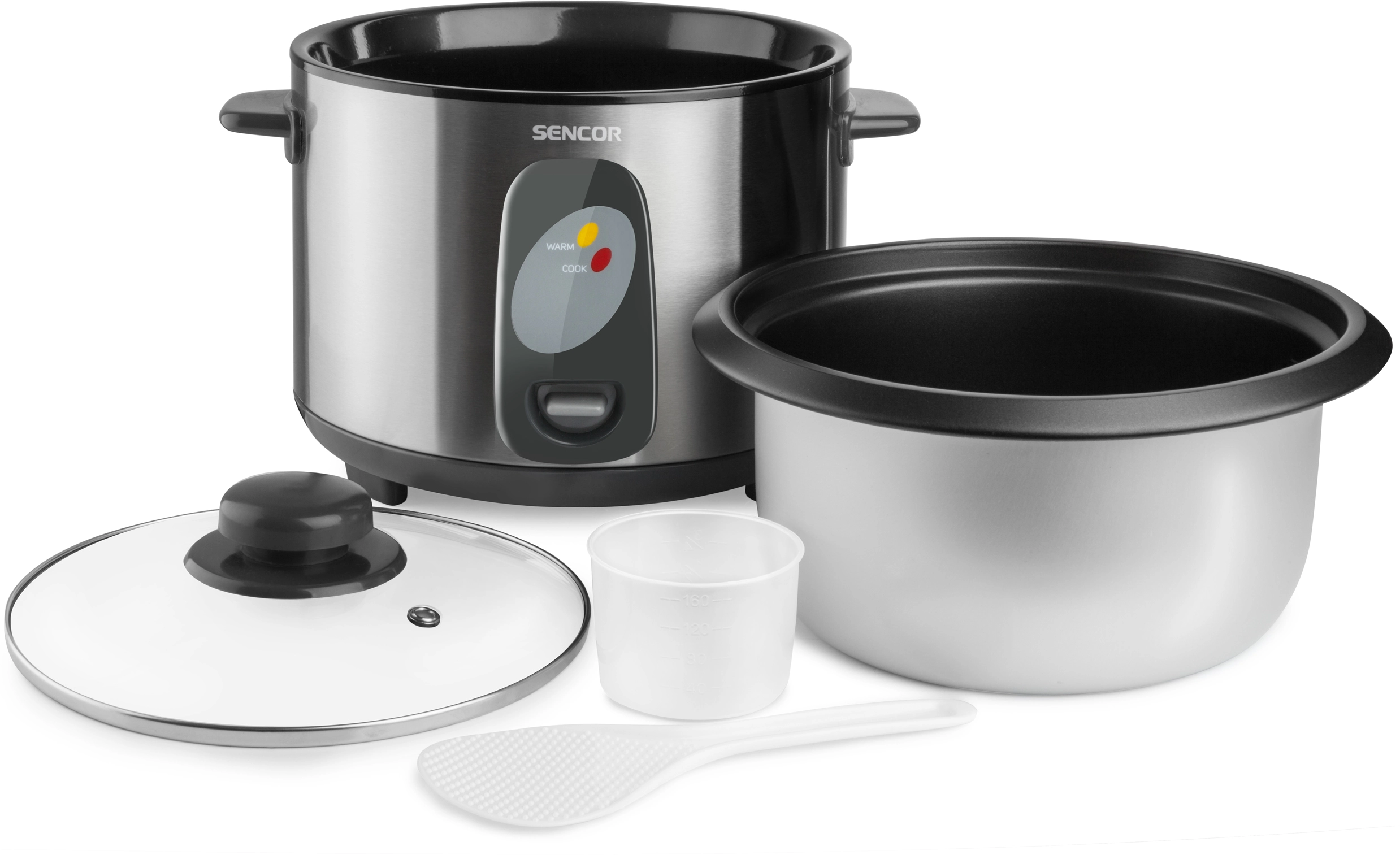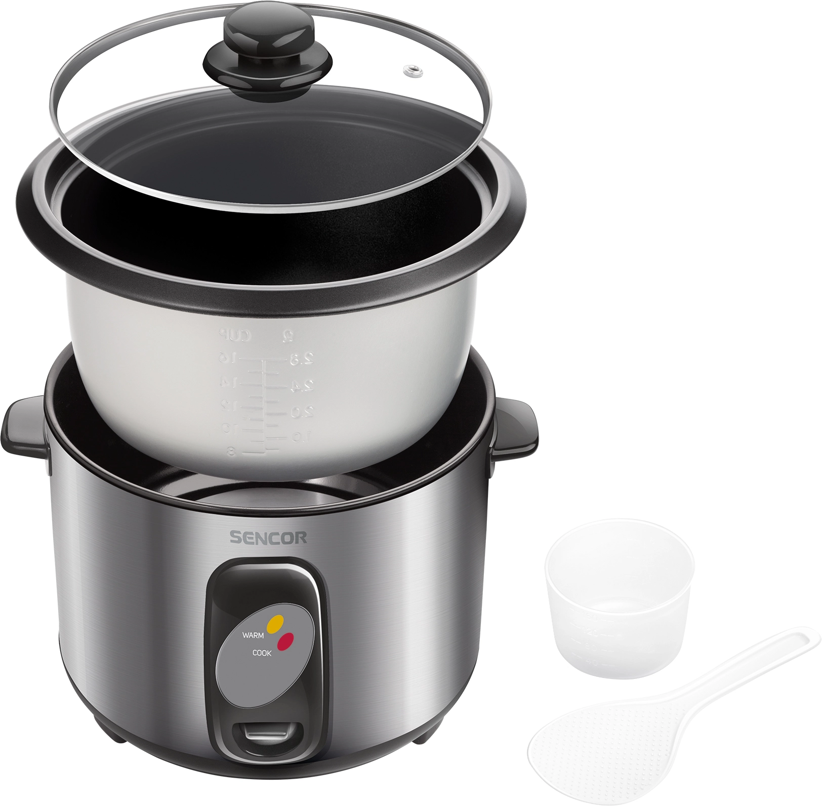 Рисоварка Sencor, 500Вт, чаша-1,5л, електр. керування , знімна кришка, нерж. сталь, сірий