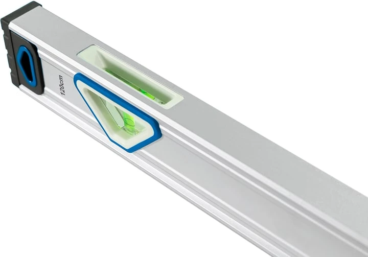 Цей 120-сантиметровий рівень Bosch має міцний алюмінієвий корпус та ударостійкі торцеві ковпачки. Протиковзкі наконечники гарантують стабільність під час використання. Він поєднує в собі відмінну читабельність і тривалу роботу.