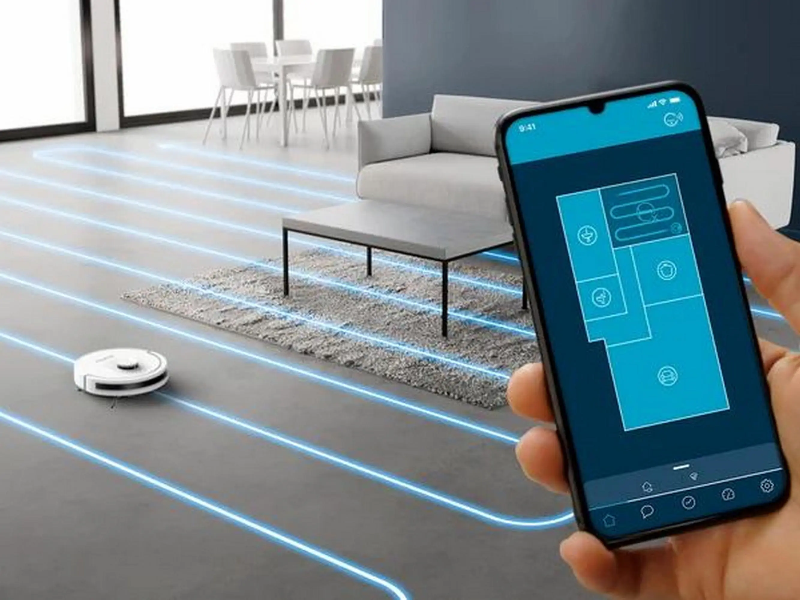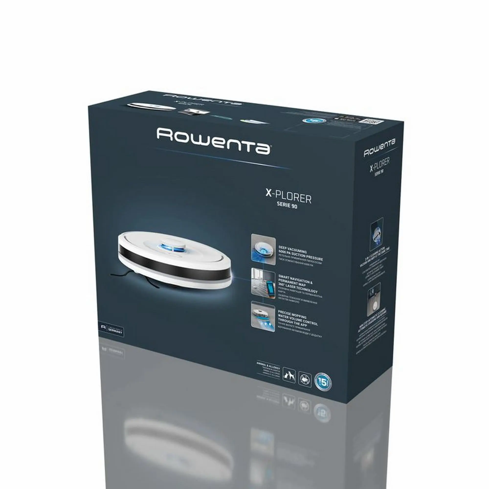 Зустрічайте Rowenta X-PLORER Serie 90 — робот-пилосос, що забезпечує ретельне прибирання з мінімумом зусиль. Завдяки розумній навігації з лазерним скануванням на 360° він точно орієнтується у просторі та ефективно прибирає в кожній кімнаті. Потужність всмоктування до 6000 Па дозволяє легко справлятися з щоденним пилом і брудом, а система Smart Aqua Power забезпечує подвійний ефект: збирає сміття й одночасно протирає підлогу вологою мікрофіброю. Ви можете самостійно налаштовувати подачу води — три рівні зволоження або зовсім без води, залежно від потреб. Автоматичне підзаряджання гарантує безперервну роботу, коли це потрібно.