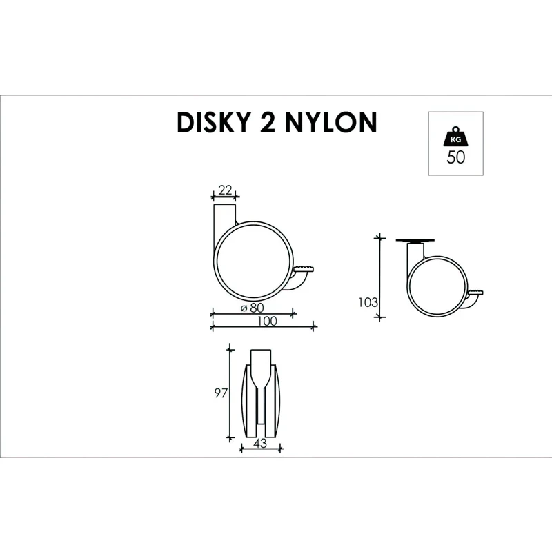 Ролик мебельный OgTM DISKY 2 NYLON 8.5 D-80мм Черный/Белый