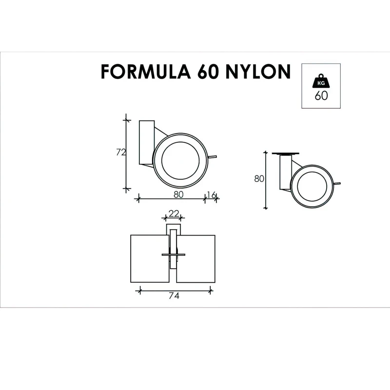 Мебельный ролик OgTM FORMULA 60 NYLON 3.1 D-60мм Алюминий/Серый – это надёжный и долговечный ролик, обеспечивающий плавное перемещение мебели и оборудования. Благодаря комбинации алюминия и нейлона ролик обладает высокой прочностью и устойчивостью к износу.
