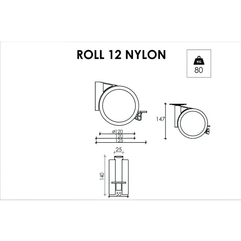 Мебельный ролик OgTM ROLL 12 NYLON 10.2 D-120мм Серый – это прочный и износостойкий ролик, предназначенный для перемещения тяжёлой мебели и промышленного оборудования. Изготовлен из высококачественного нейлона, что обеспечивает долговечность и плавность хода.