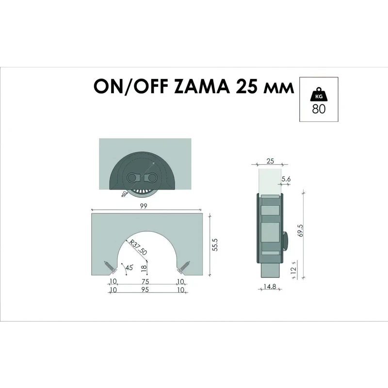 Мебельный врезной ролик OgTM ON/OFF ZAMA 1.3 D-60мм под плиту 25мм Белый/Серый – это функциональный и практичный элемент для мобильной мебели, который сочетает скрытый монтаж и возможность фиксации движения. Ролик легко устанавливается в плиту толщиной 25 мм, сохраняя эстетичный вид мебели.