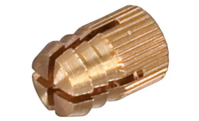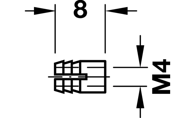 Розпірна муфта з буртиком, з внутрішньою різьбою М4, виготовлена з латуні. Муфта для отвору діаметром 5 мм, довжина розпірної муфти 8 мм.