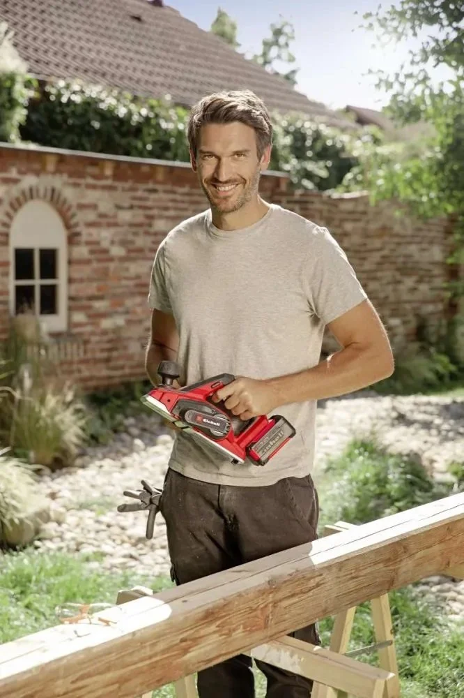 Рубанок акумуляторний Einhell TE-PL 18/82 Li – Solo серії Expert має високу продуктивність, великий робочої глибиною (до 2 мм) і глибиною вибірки (фальца) до 8 мм, дозволяючи працювати швидко і ефективно. Рубанок має ергономічний дизайн, а так само наявність обмежувача глибини вибірки, паралельного упору, можливості вибору напрямку пиловидалення вліво або вправо, наявність відділення для зберігання запасних ножів, виконаного безпосередньо в корпусі інструменту. Автоматичний захист леза і зручні м'які ручка забезпечують оптимальну безпеку при роботі з рубанком. Акумулятор і зарядний пристрій не входять до комплекту поставки.