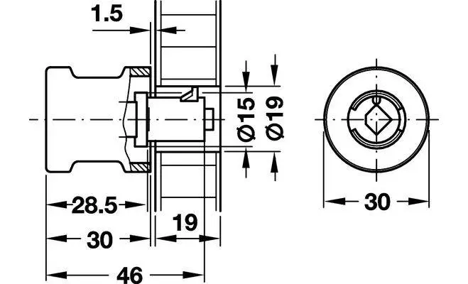 Ручка до замка SYMO ліва 30мм D30мм для товщини 19 мм 22980620