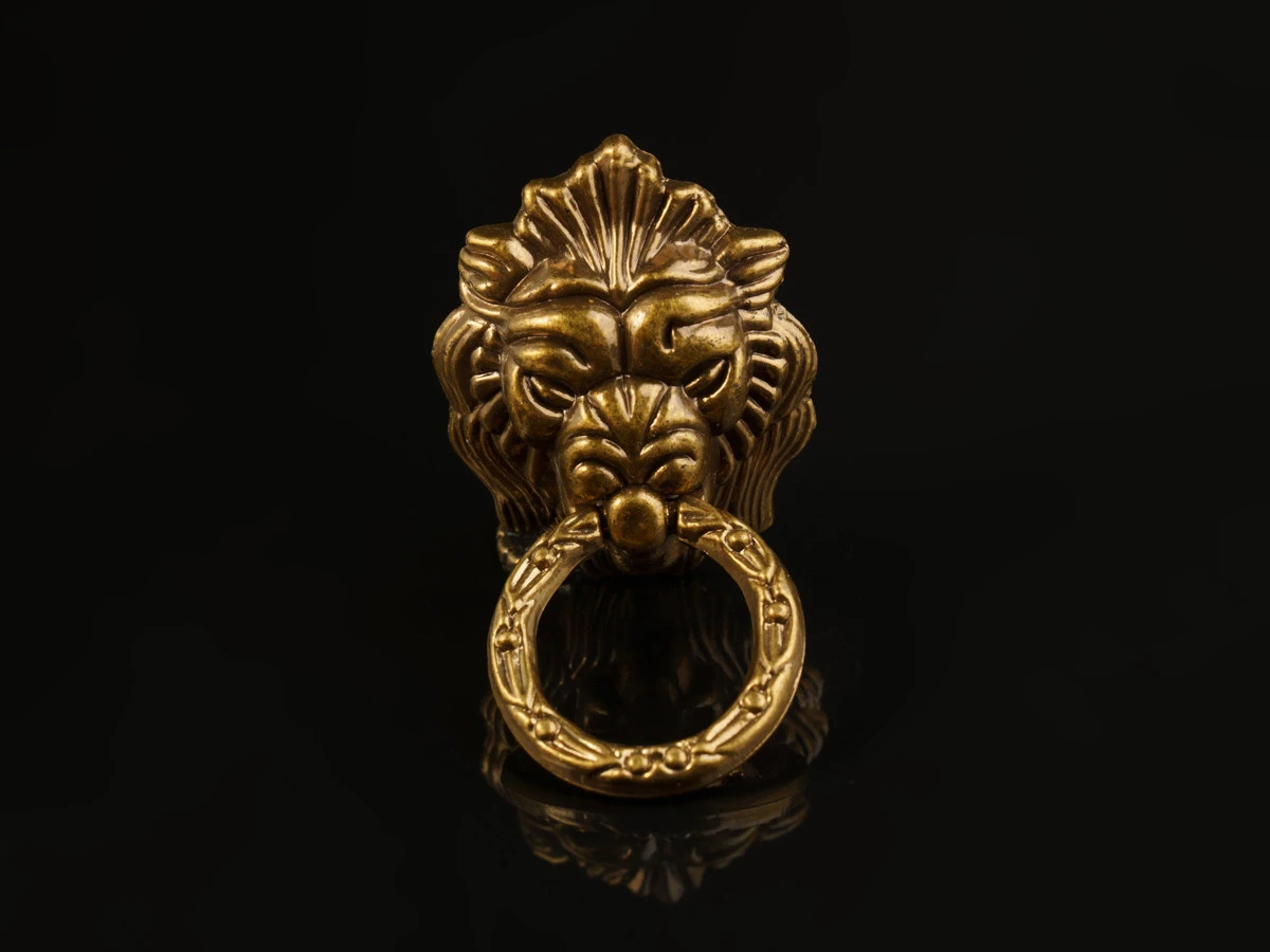 Мебельная ручка, «Голова льва», пластик, бронза, 70х43 мм