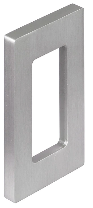 Врізна ручка кольору нержавіючої сталі, матеріал алюміній. Висотою 110 мм, застосовується для скла товщиною від 6 до 12,7 мм. Кріплення ручки відбувається за допомогою двустороннього скотча. Дякуючи своєму кольору та покриттю гарно впишеться в дизайн більшості сучасних інтер'єрів. Має гарну форму і зручна при відкритті.