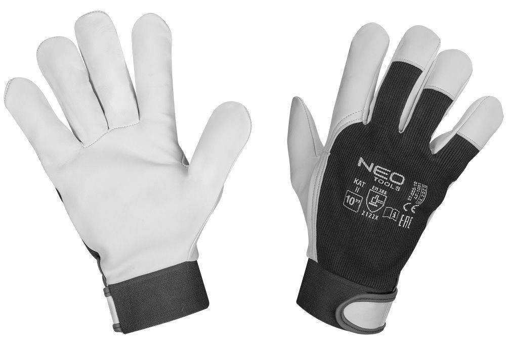 Рукавички робочі Neo Tools, козяча шкіра, фіксація зап’ястя, р.10, чорно-білий
