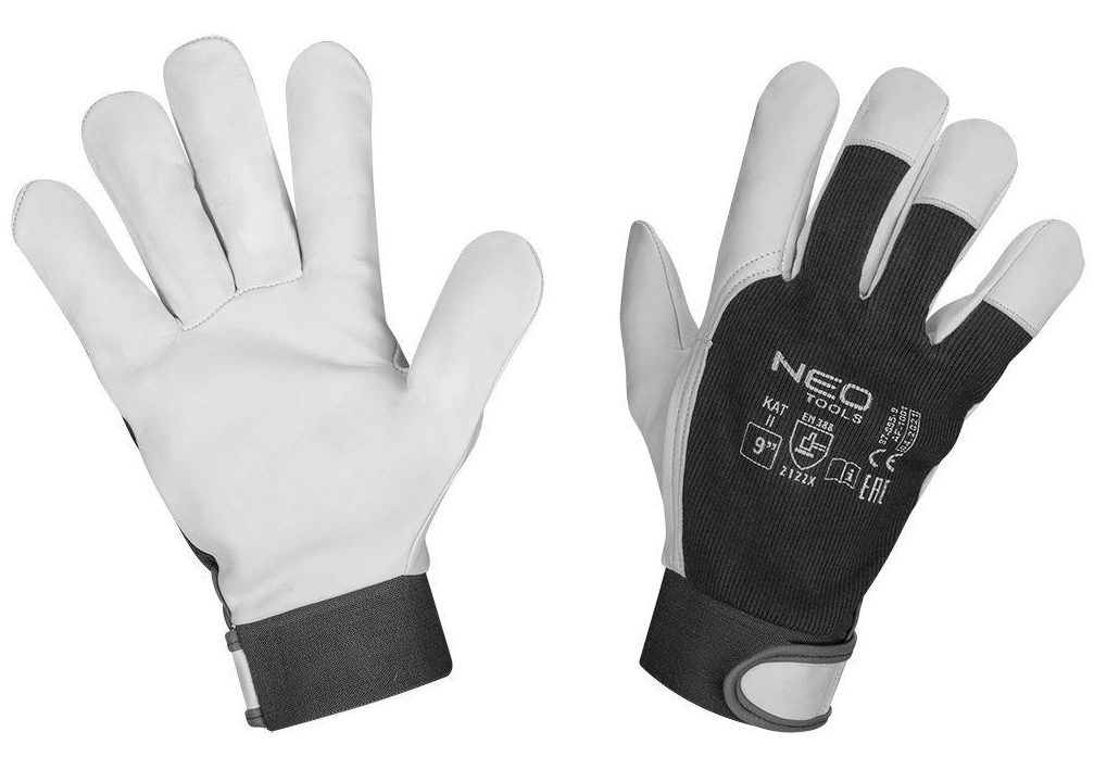 Рукавички робочі Neo Tools, козяча шкіра, фіксація зап’ястя, р.9, чорно-білий