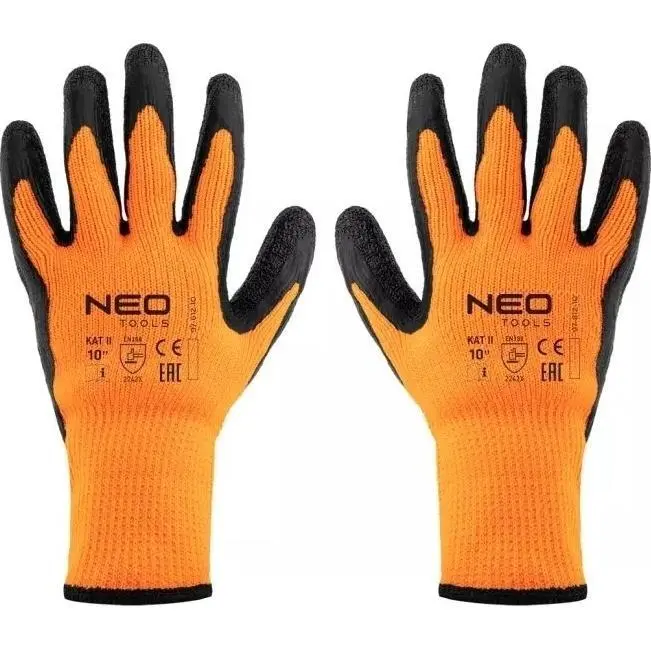 Рукавички робочі Neo Tools, латексне покриття, поліестер, р.10, помаранчево чорні