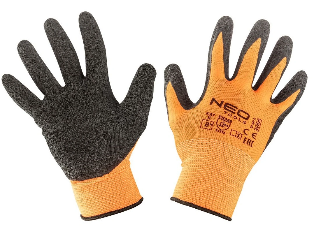 Рукавички робочі Neo Tools, латексне покриття, поліестер, р.8, помаранчевий