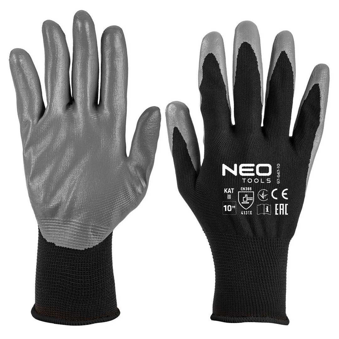 Робочі рукавички 97-647-11 від NEO TOOLS - це міцні та довговічні рукавички з поліестеру з нітриловим покриттям (гладкі), які підходять для широкого спектру застосування - транспортні роботи, садівництво, будівництво, переміщення та зберігання, складальні роботи, виробництво дрібних деталей, DIY та автомобілебудування.